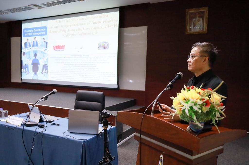 การประชุมประกอบด้วยการบรรยายหัวข้อ “หลักการในการค้นหาและประเมินความเสี่ยงระดับองค์กร (Corporate Risk) และระดับโครงการขับเคลื่อนเชิงกลยุทธ์สำคัญ (Strategic Big Move Project Risk) โดยใช้ AI เป็นเครื่องมือช่วยวิเคราะห์” ซึ่งช่วยเสริมศักยภาพผู้บริหารในการใช้เทคโนโลยีสมัยใหม่เพื่อวิเคราะห์ความเสี่ยงอย่างมีประสิทธิภาพ ต่อจากนั้นเป็นกิจกรรม Workshop/Case & Discussion: Key Opportunity & Risk Identification โดยแบ่งผู้เข้าร่วมออกเป็น 6 กลุ่ม เพื่อวิเคราะห์ประเด็นความเสี่ยงสำคัญของมหาวิทยาลัย ได้แก่