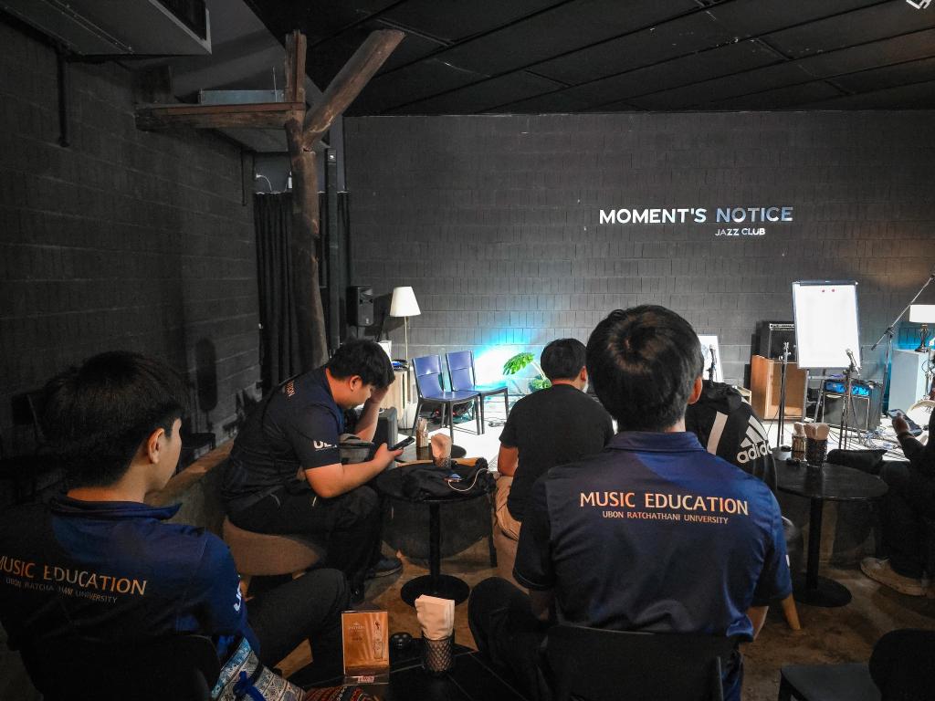นอกจากการแสดงบนเวทีแล้ว นักศึกษายังได้เข้าร่วม อบรมเชิงปฏิบัติการด้านดนตรี (MASTERCLASS) ในหัวข้อ “Music Philosophy & Approach” และ “Augmented Saxophone with Electronics” โดยมีคุณ Jorge Rossy ศิลปินแจ๊สระดับโลก และคุณชาร์ลี โรส Charley Rose นักดนตรีแซกโซโฟน อาจารย์ นักประพันธ์ และนักดนตรีศึกษานานาชาติ ผู้เชี่ยวชาญด้านการสร้างสรรค์ผลงานด้วยเทคนิคแซกโซโฟนผสานระบบอิเล็กทรอนิกส์ ร่วมถ่ายทอดองค์ความรู้และประสบการณ์ ณ Moment’s Notice Jazz Club เมื่อวันที่ 5-7 ธันวาคม 2568 ที่ผ่านมา