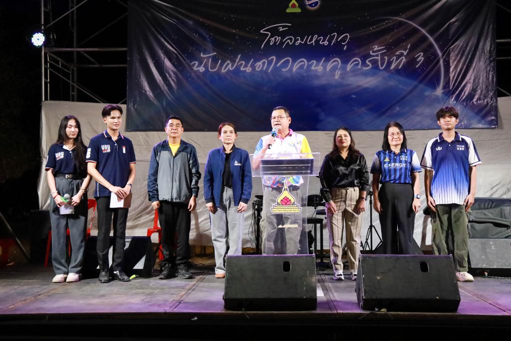 มหาวิทยาลัยอุบลราชธานี โดย ชมรมดาราศาสตร์ UBU Astronomy Club องค์การนักศึกษา จัดโครงการโต้ลมหนาว นับฝนดาวคนคู่ ครั้งที่ 3” เพื่อส่งเสริมการเรียนรู้ด้านดาราศาสตร์และสร้างพื้นที่กิจกรรมสร้างสรรค์สำหรับนักศึกษาและประชาชนทั่วไป โดยมี ผู้ช่วยศาสตราจารย์ ดร.ปรีชา บุญจูง รองอธิการบดีฝ่ายพัฒนานักศึกษาและศิษย์เก่าสัมพันธ์ เป็นประธานเปิดกิจกรรม และนายพิชญุตม์พงศ์ ดอกบัว ประธานชมรมดาราศาสตร์ กล่าวรายงาน โดยมีนักศึกษาและผู้สนใจเข้าร่วมกิจกรรมเป็นจำนวนมาก ณ ลานกิจกรรมข้างสระว่ายน้ำสมจิตต์ ยอดเศรณี มหาวิทยาลัยอุบลราชธานี เมื่อวันที่ 13ธันวาคม 2568