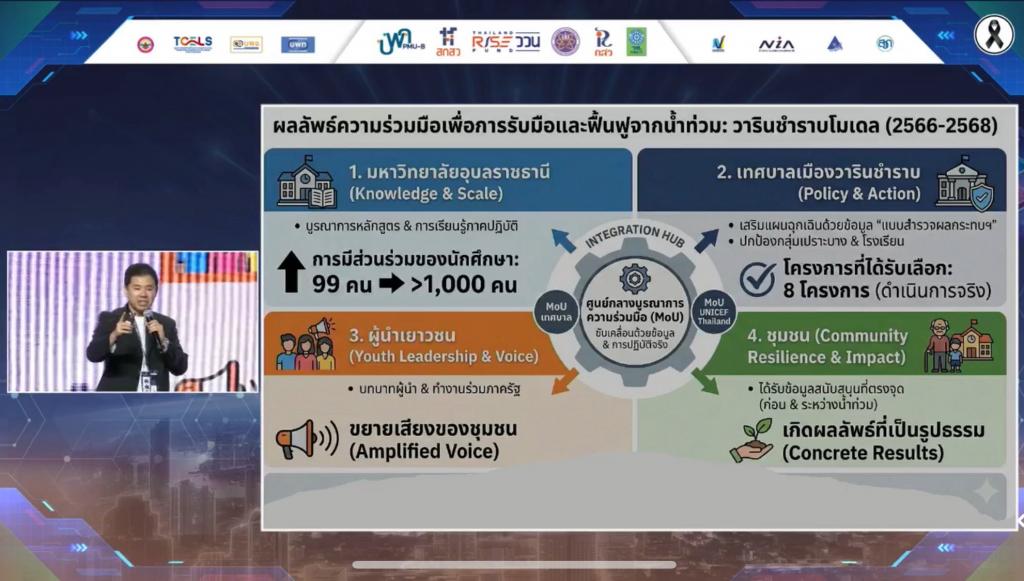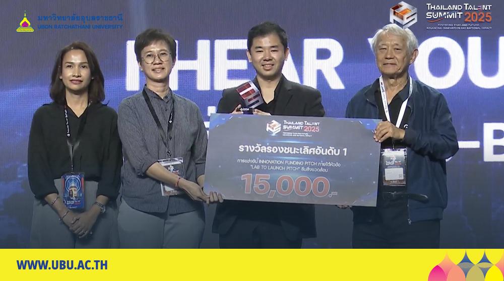 คณะนักวิจัยคณะรัฐศาสตร์ มหาวิทยาลัยอุบลราชธานี สร้างชื่อเสียงในเวทีระดับประเทศ คว้า 2 รางวัล จากการนำเสนอผลงานวิจัย Innovation Funding Pitch ภายใต้หัวข้อ Lab to Launch Pitch ในงาน Thailand Talent Summit 2025 รางวัลรองชนะเลิศ อันดับ 1 ด้านการสร้างผลกระทบเชิงสังคมและสิ่งแวดล้อมเพื่อความยั่งยืน และ รางวัล Popular Vote จากโครงการ “I HEAR YOUR VOICE” ในงาน Thailand Talent Summit 2025 จัดขึ้นภายใต้แนวคิด “Fostering Thailand Future; Advancing Innovation and National Impact” หรือ “การบ่มเพาะอนาคตไทย ก้าวหน้านวัตกรรม สร้างผลกระทบระดับชาติ” เพื่อเป็นเวทีแสดงศักยภาพกำลังคนด้านวิจัย นวัตกรรม และเทคโนโลยีของประเทศ พร้อมเชื่อมโยงผลงานวิจัยสู่การใช้ประโยชน์เชิงนโยบายและเชิงสังคม โดยได้รับความร่วมมือจาก สำนักงานคณะกรรมการส่งเสริมวิทยาศาสตร์ วิจัยและนวัตกรรม (สกสว.) สำนักงานปลัดกระทรวงการอุดมศึกษา วิทยาศาสตร์ วิจัยและนวัตกรรม (สป.อว.) หน่วยบริหารและจัดการทุนด้านการพัฒนากำลังคน (บพค.) และสำนักงานการวิจัยแห่งชาติ (วช.) จัดขึ้นระหว่างวันที่ 11–13 ธันวาคม 2568 มีนักวิจัยกว่า 2,000 คน ทั่วประเทศ เข้าร่วม ณ ศูนย์ประชุมนานาชาติพีช (PEACH) โรงแรมรอยัล คลิฟ บีช พัทยา จังหวัดชลบุรี