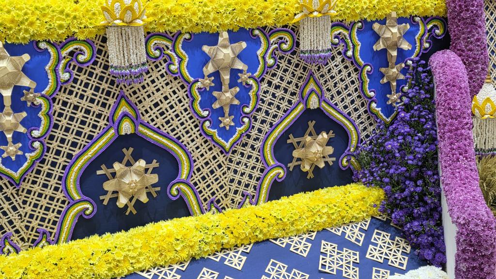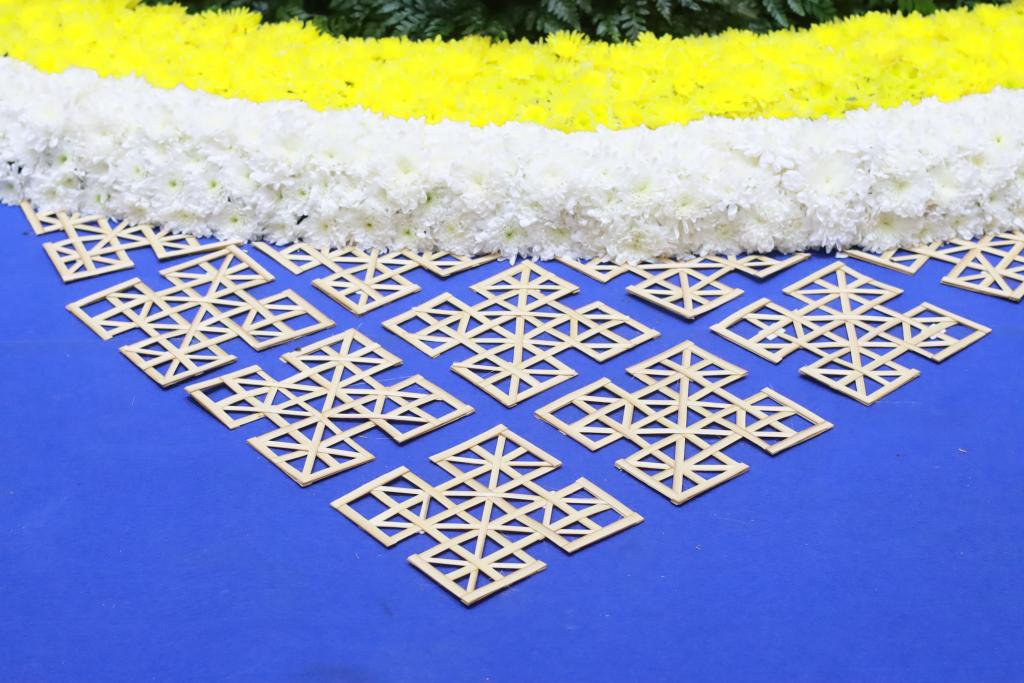 แนวคิดทั้งหมดได้ถูกหลอมรวมถ่ายทอดผ่านองค์ประกอบการตกแต่งทุกส่วน ผสานเทคนิคและวัสดุภูมิปัญญาท้องถิ่นอุบลราชธานีและภาคอีสาน อาทิ งานเทียนพรรษาประเภทติดพิมพ์ งานจักสาน มาลัยข้าวตอก การตกแต่งด้วยดอกบัวซึ่งเป็นดอกไม้มงคลทางพุทธศาสนาและเป็นดอกไม้ประจำจังหวัดอุบลราชธานี รวมถึงดอกโสน ดอกไม้แห้งเครื่องบูชาในงานบุญผะเวส (เทศน์มหาชาติ) เป็นการผสมผสานคติความเชื่อในสังคมสมัยบุพกาล หลอมรวมเป็นหนึ่งเดียวกันของสังคมพหุวัฒนธรรม ที่แลกเปลี่ยนเรียนรู้และผสมผสานกันของผู้คนสองฝั่งโขง เฉกเช่นวิถีแห่งการเรียนรู้ที่ต้องบูรณาการกับสรรพศาสตร์ต่างๆ อย่างสร้างสรรค์
