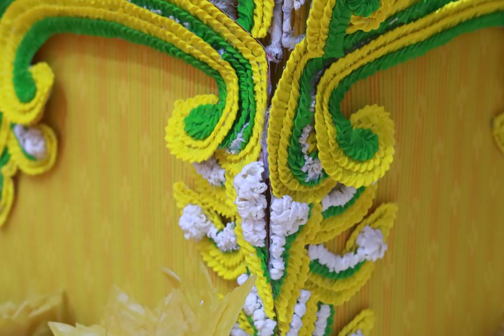 - มาลัยข้าวตอก แทนดอกมณฑารพ ดอกไม้ทิพย์แห่งสรวงสวรรค์ เครื่องบูชาในบุญเดือน 3 หรือบุญข้าวจี่ (วันมาฆบูชา) สื่อถึงการงอกงามและการสืบต่อแห่งบุญปัญญา เอกลักษณ์อำเภอมหาชนะชัย จังหวัดยโสธร