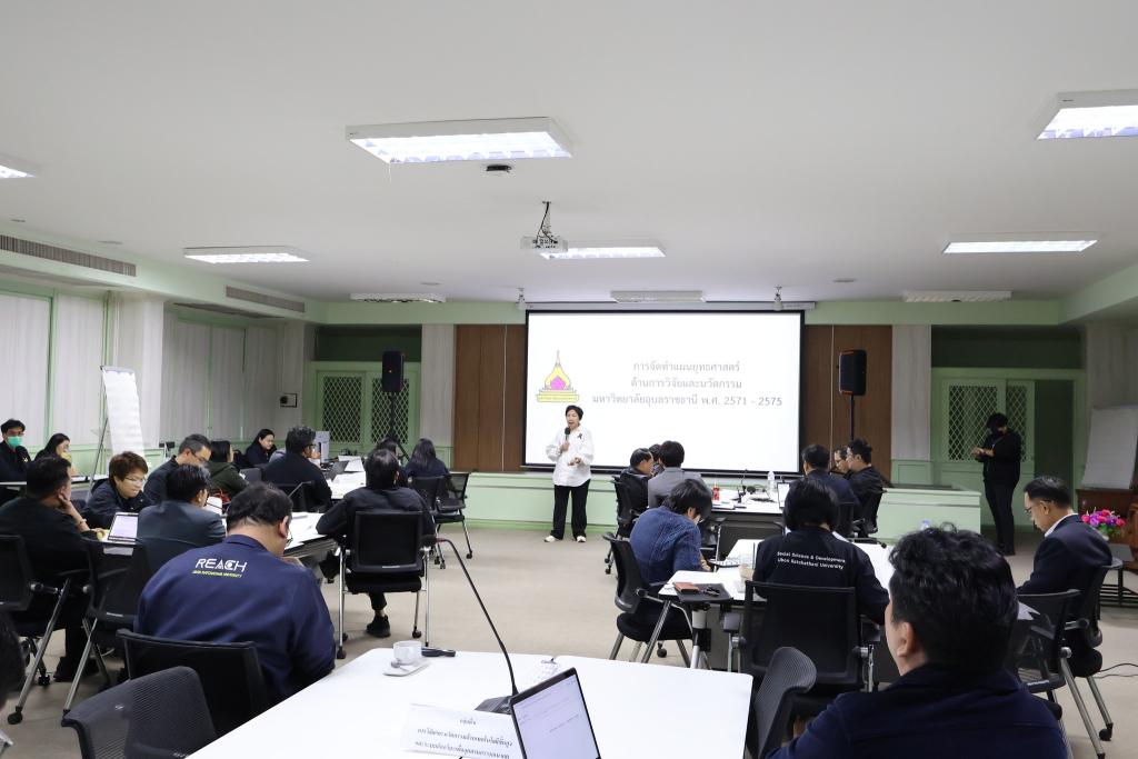 มหาวิทยาลัยอุบลราชธานี โดย สำนักงานส่งเสริมบริหารงานวิจัย บริการวิชาการและทำนุบำรุงศิลปวัฒนธรรม จัดประชุมปฏิบัติการเพื่อจัดทำแผนยุทธศาสตร์ด้านการวิจัยและนวัตกรรม มหาวิทยาลัยอุบลราชธานี พ.ศ. 2571–2575 (ครั้งที่ 2) เพื่อกำหนดทิศทางและกรอบการพัฒนางานวิจัยและนวัตกรรมของมหาวิทยาลัยในระยะ 5ปีข้างหน้า โดยการประชุมจัดขึ้น ณ ห้องประชุม 1405ชั้น 4สำนักงานอธิการบดี 1มหาวิทยาลัยอุบลราชธานี