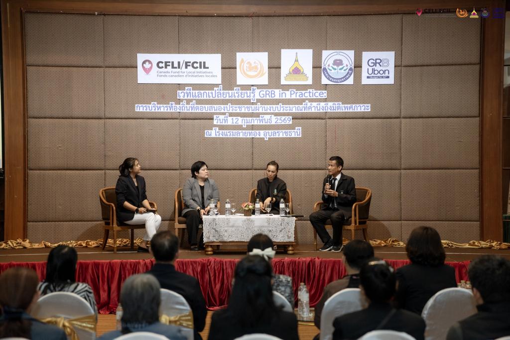 เวทีแลกเปลี่ยนเรียนรู้ในหัวข้อ “GRB in Practice” จัดขึ้นต่อเนื่องเป็นปีที่ 2 ภายใต้การสนับสนุนจาก กองทุนแคนาดาเพื่อพัฒนาท้องถิ่น (CFLI) สะท้อนให้เห็นถึงความร่วมมือที่เข้มแข็งระหว่างสถาบันการศึกษาและองค์กรปกครองส่วนท้องถิ่น ในการบูรณาการองค์ความรู้ทางวิชาการสู่การบริหารจัดการเชิงปฏิบัติ เพื่อให้การดำเนินงานของท้องถิ่นสามารถตอบสนองต่อความแตกต่างหลากหลายของประชาชนทุกเพศ ทุกวัย ได้อย่างแท้จริง ภายในงานมีกิจกรรม Show and Share “นวัตกรรมการบริหารงานท้องถิ่น” ซึ่งนำเสนอผลงานและแนวปฏิบัติที่เกิดจากงานวิจัยและการดำเนินงานจริงของเทศบาลนครอุบลราชธานี ไม่เพียงเป็นการถ่ายทอดผลสำเร็จ แต่ยังเป็นพื้นที่เปิดสำหรับการเรียนรู้ร่วมกันของผู้บริหารจากเทศบาลและองค์กรปกครองส่วนท้องถิ่นอื่น ๆ ที่สามารถนำแนวคิดและบทเรียนด้าน GRB หรือ “งบประมาณเพื่อทุกคน” ไปประยุกต์ใช้ให้เหมาะสมกับบริบทของแต่ละพื้นที่