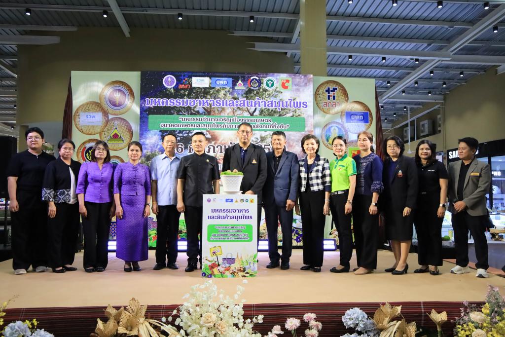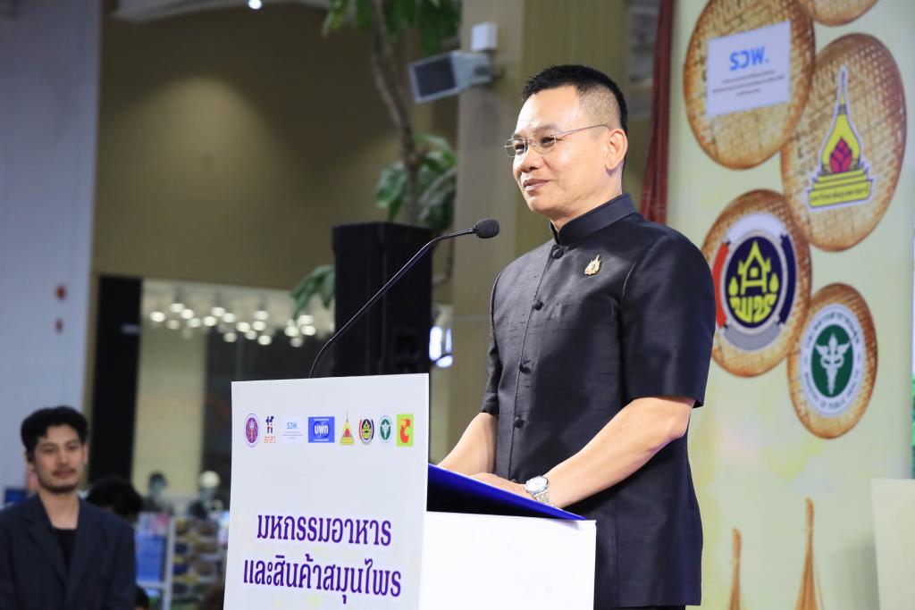 ศาสตราจารย์ ดร.ทวนทอง จุฑาเกตุ หัวหน้าโครงการวิจัย กล่าวว่า การจัดงานครั้งนี้เป็นกิจกรรมสำคัญของโครงการวิจัยห่วงโซ่คุณค่าสมุนไพรจังหวัดอำนาจเจริญ ซึ่งดำเนินการต่อเนื่องมาตั้งแต่ปี 2563 ภายใต้โครงการแก้ไขปัญหาความยากจนพื้นที่จังหวัดอำนาจเจริญ ปีที่ 6 โดยมุ่งขับเคลื่อนตามนโยบาย “เมืองสมุนไพร (Herbal City)” ที่สอดคล้องกับแผนปฏิบัติการด้านสมุนไพรแห่งชาติ เน้นการสร้างมาตรฐาน เพิ่มมูลค่า และพัฒนาสมุนไพรตลอดห่วงโซ่คุณค่า (Supply Chain) ตั้งแต่ต้นน้ำ กลางน้ำ และปลายน้ำ โดยทีมวิจัยได้ใช้แนวคิด “เมืองสมุนไพร” เป็นกลไกในการพัฒนาศักยภาพชุมชนและผู้นำชุมชน เพื่อโอบอุ้มกลุ่มคนจน กลุ่มเปราะบาง และผู้ด้อยโอกาส ให้มีส่วนร่วมในกิจกรรมตลอดห่วงโซ่คุณค่า อาทิ การปลูกตะไคร้ ข่า ผักแปลงรวม การแปรรูปผลิตภัณฑ์ และการพัฒนาเมนูอาชีพต่าง ๆ ส่งผลให้กลุ่มเป้าหมายมีรายได้เพิ่มขึ้นและคุณภาพชีวิตดีขึ้นอย่างเป็นรูปธรรม