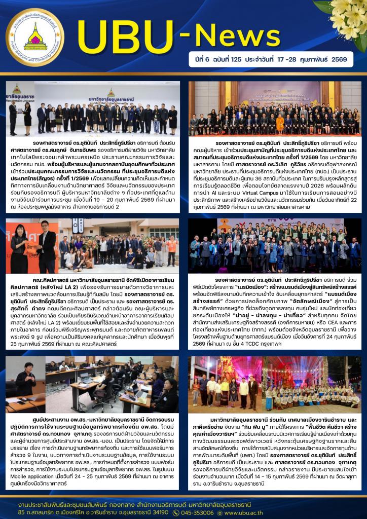 UBU NEWS ปีที่ 6 ฉบับที่ 125 ประจำวันที่ 17 - 28 กุมภาพันธ์ 2569