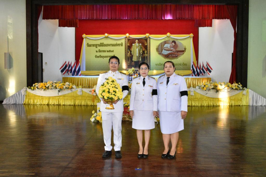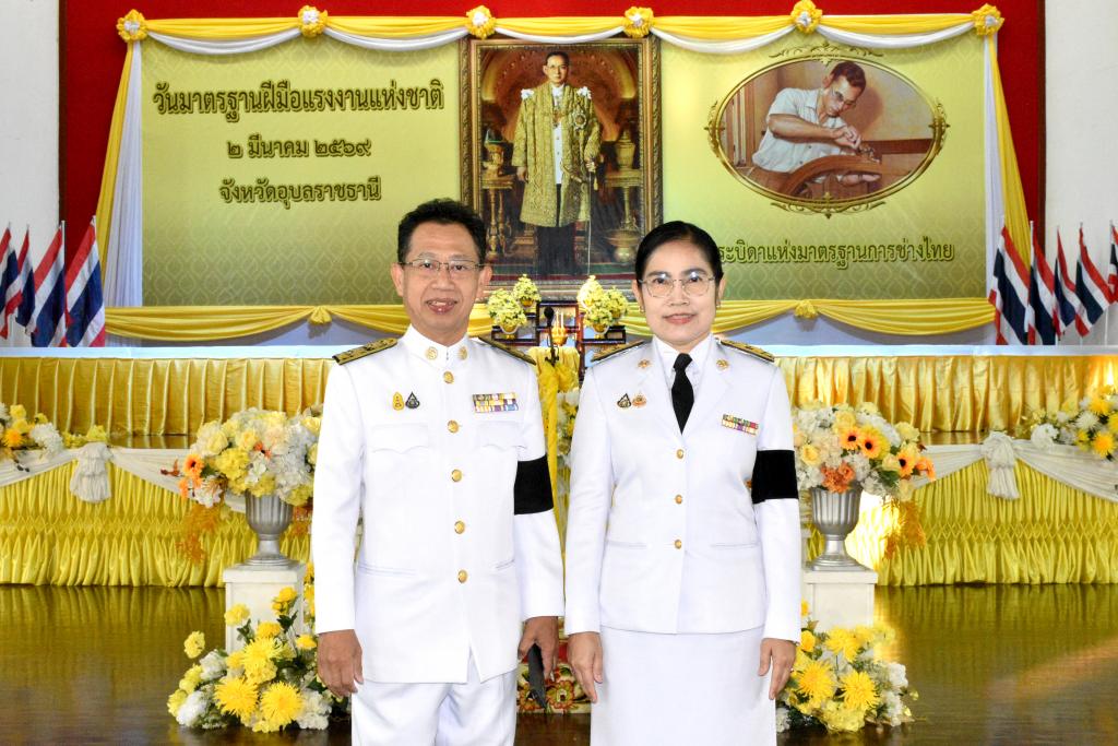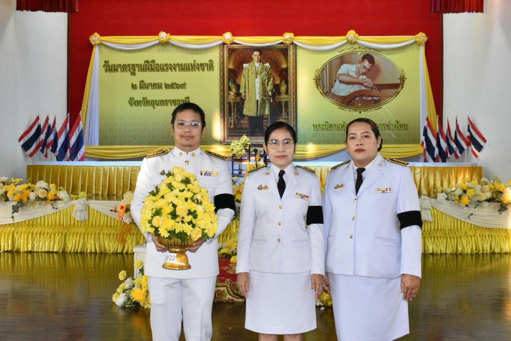 มหาวิทยาลัยอุบลราชธานี โดย นางสาวมัณฑนา เจือบุญ ผู้อำนวยการกองกลาง สำนักงานอธิการบดี พร้อมบุคลากร ร่วมพิธีถวายเครื่องราชสักการะแด่พระบาทสมเด็จพระบรมชนกาธิเบศร มหาภูมิพลอดุลยเดชมหาราชบรมนาถบพิตร “พระบิดาแห่งมาตรฐานการช่างไทย” เนื่องในวันมาตรฐานฝีมือแรงงานแห่งชาติ ประจำปี 2569 โดยมี นายณรงค์ เทพเสนา ผู้ว่าราชการจังหวัดอุบลราชธานี เป็นประธานประกอบพิธีถวายราชสักการะแด่พระบาทสมเด็จพระบรมชนกาธิเบศร มหาภูมิพลอดุลยเดชมหาราช บรมนาถบพิตร เนื่องในวันมาตรฐานฝีมือแรงงานแห่งชาติ โดยมีข้าราชการ ทหาร ตำรวจ ภาคเอกชน องค์กรอิสระ และประชาชน ร่วมถวายราชสักการะ วางพานพุ่มดอกไม้สดโทนสีขาวหรือสีเหลือง และถวายราชสดุดีเทิดพระเกียรติพระบาทสมเด็จพระบรมชนกาธิเบศร มหาภูมิพลอดุลยเดชมหาราช บรมนาถบพิตร ในฐานะทรงเป็น “พระบิดาแห่งมาตรฐานการช่างไทย” เพื่อเป็นการเทิดพระเกียรติ ตามที่สำนักนายกรัฐมนตรีมีมติเห็นชอบเมื่อวันที่ 17 กุมภาพันธ์ 2552 เพื่อเทิดพระเกียรติ น้อมระลึกในพระมหากรุณาธิคุณ และถวายราชสดุดีในพระปรีชาสามารถทางด้านการช่างของพระบาทสมเด็จพระบรมชนกาธิเบศร มหาภูมิพลอดุลยเดชมหาราชบรมนาถบพิตร ในฐานะทรงเป็น “พระบิดาแห่งมาตรฐานการช่างไทย” รวมทั้งทรงให้ความสำคัญในการพัฒนาฝีมือแรงงานของช่างไทยให้มีความเป็นมาตรฐาน และกำหนดให้ทุกวันที่ 2 มีนาคมของทุกปี เป็น “วันมาตรฐานฝีมือแรงงานแห่งชาติ” จัดโดย สถาบันพัฒนาฝีมือแรงงาน 7 อุบลราชธานี เมื่อวันจันทร์ที่ 2 มีนาคม 2569 ณ อาคารอเนกประสงค์ สถาบันพัฒนาฝีมือแรงงาน 7 อุบลราชธานี