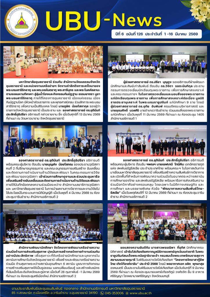 UBU NEWS ปีที่ 6 ฉบับที่ 126 ประจำวันที่ 1 - 16 มีนาคม 2569