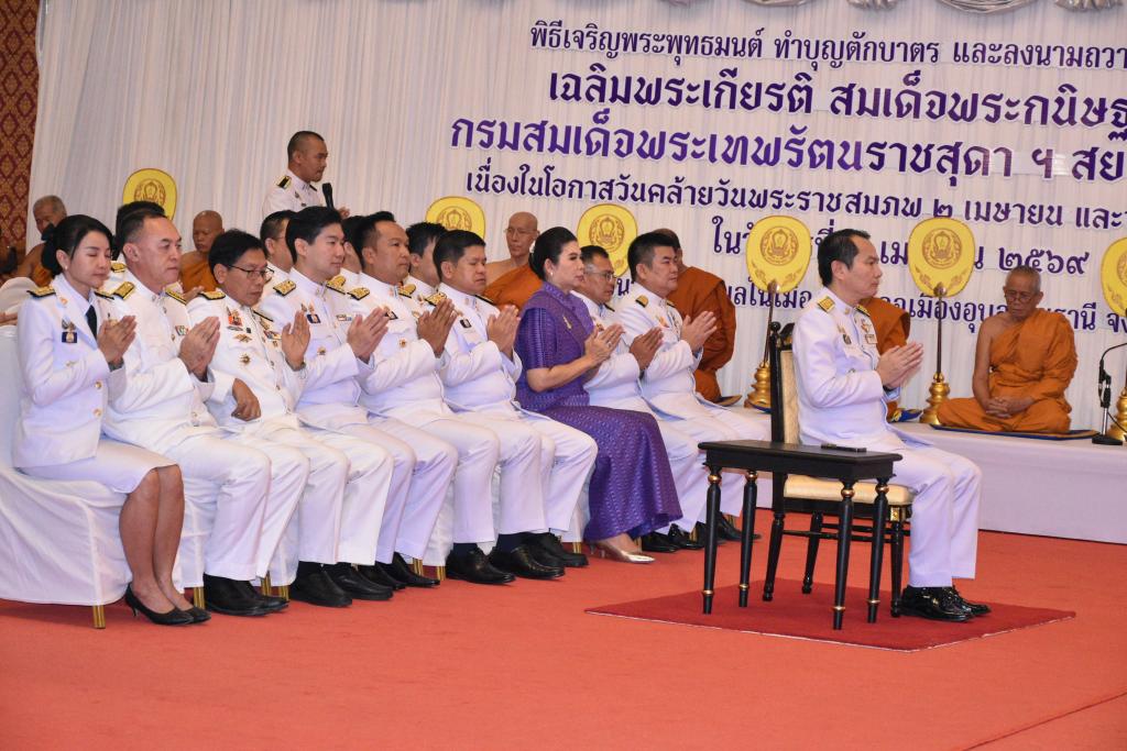 มหาวิทยาลัยอุบลราชธานี โดย ผู้ช่วยศาสตราจารย์ ดร.เกรียงศักดิ์ แก้วกุลชัย รองอธิการบดีฝ่ายบริหาร และบุคลากรมหาวิทยาลัยอุบลราชธานี ร่วมกิจกรรมเฉลิมพระเกียรติ สมเด็จพระกนิษฐาธิราชเจ้า กรมสมเด็จพระเทพรัตนราชสุดา ฯ สยามบรมราชกุมารี เนื่องในโอกาสวันคล้ายวันพระราชสมภพ 2 เมษายน และวันอนุรักษ์มรดกไทย โดยมี นายณรงค์ เทพเสนา ผู้ว่าราชการจังหวัดอุบลราชธานี เป็นประธาน นำข้าราชการ ศาล อัยการ ทหาร ตำรวจ พนักงานรัฐวิสาหกิจ ผู้นำองค์กรปกครองส่วนท้องถิ่น ชมรมแม่บ้านมหาดไทยจังหวัด และประชาชนชาวจังหวัดอุบลราชธานี ร่วมพิธีเจริญพระพุทธมนต์ พระสงฆ์สมณศักดิ์ 10 รูป เจริญพระพุทธมนต์ และพระสงฆ์และสามเณร 72 รูป รับบิณฑบาต เมื่อวันพุธที่ 1 เมษายน 2569 ณ วัดมหาวนาราม ตำบลในเมือง อำเภอเมืองอุบลราชธานี จังหวัดอุบลราชธานี
