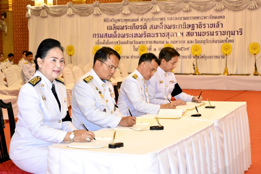 และในโอกาสนี้ นายณรงค์ เทพเสนา ผู้ว่าราชการจังหวัดอุบลราชธานี พร้อมศาล ทหาร ตำรวจ และหัวหน้าส่วนราชการ ร่วมพิธีลงนามถวายพระพรชัยมงคลเบื้องหน้าพระฉายาลักษณ์ สมเด็จพระกนิษฐาธิราชเจ้า กรมสมเด็จพระเทพรัตนราชสุดา ฯ สยามบรมราชกุมารี โดยผู้ว่าราชการจังหวัดอุบลราชธานี ถวายดอกไม้ธูปเทียนแพ และกล่าวถวายพระพรชัยมงคล พร้อมนำศาล ทหาร ตำรวจ และหัวหน้าส่วนราชการ ลงนามถวายพระพร เพื่อแสดงความจงรักภักดี และสำนึกในพระมหากรุณาธิคุณอย่างหาที่สุดมิได้ ซึ่งในบริเวณงานกำหนดให้มีการจัดนิทรรศการพระราชประวัติ พระราชกรณียกิจและพระอัจฉริยภาพ ด้านการประพันธ์ ด้านดนตรี ด้านภาษา และด้านศิลปะของสมเด็จพระกนิษฐาธิราชเจ้า กรมสมเด็จพระเทพรัตนราชสุดา ฯ สยามบรมราชกุมารี จัดแสดงไว้อย่างสมพระเกียรติ ณ พระวิหารพระเจ้าใหญ่อินทร์แปลง วัดมหาวนาราม ตำบลในเมือง อำเภอเมืองอุบลราชธานี จังหวัดอุบลราชธานี