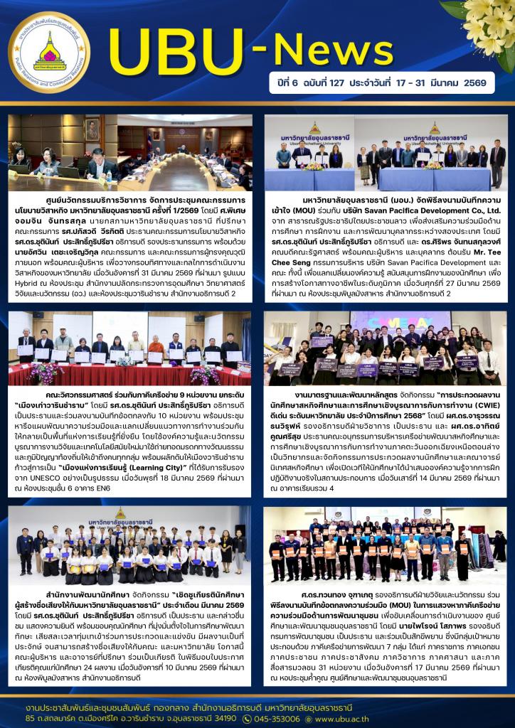 UBU NEWS ปีที่ 6 ฉบับที่ 127 ประจำวันที่ 17 - 31 มีนาคม 2569