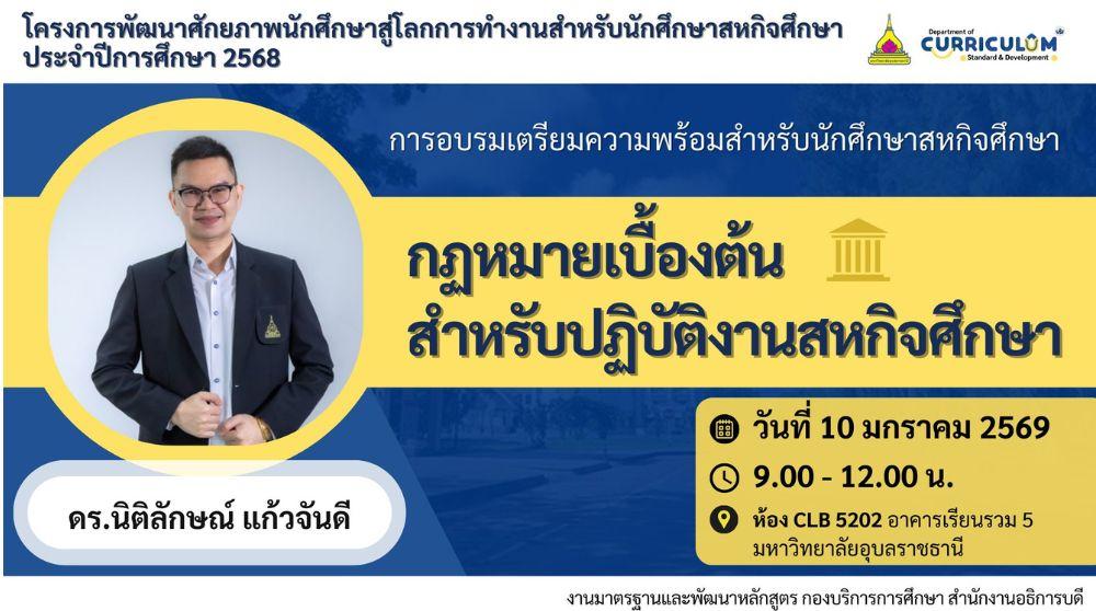 หัวข้อ “กฎหมายเบื้องต้นสำหรับปฏิบัติงานสหกิจศึกษา”
