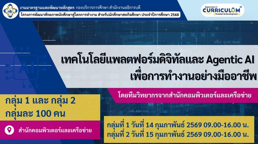 ขอเชิญนักศึกษาเข้าร่วม หัวข้อ เทคโนโลยีแพลตฟอร์มดิจิทัลและ Agentic AI เพื่อการทำงานอย่างมืออาชีพ