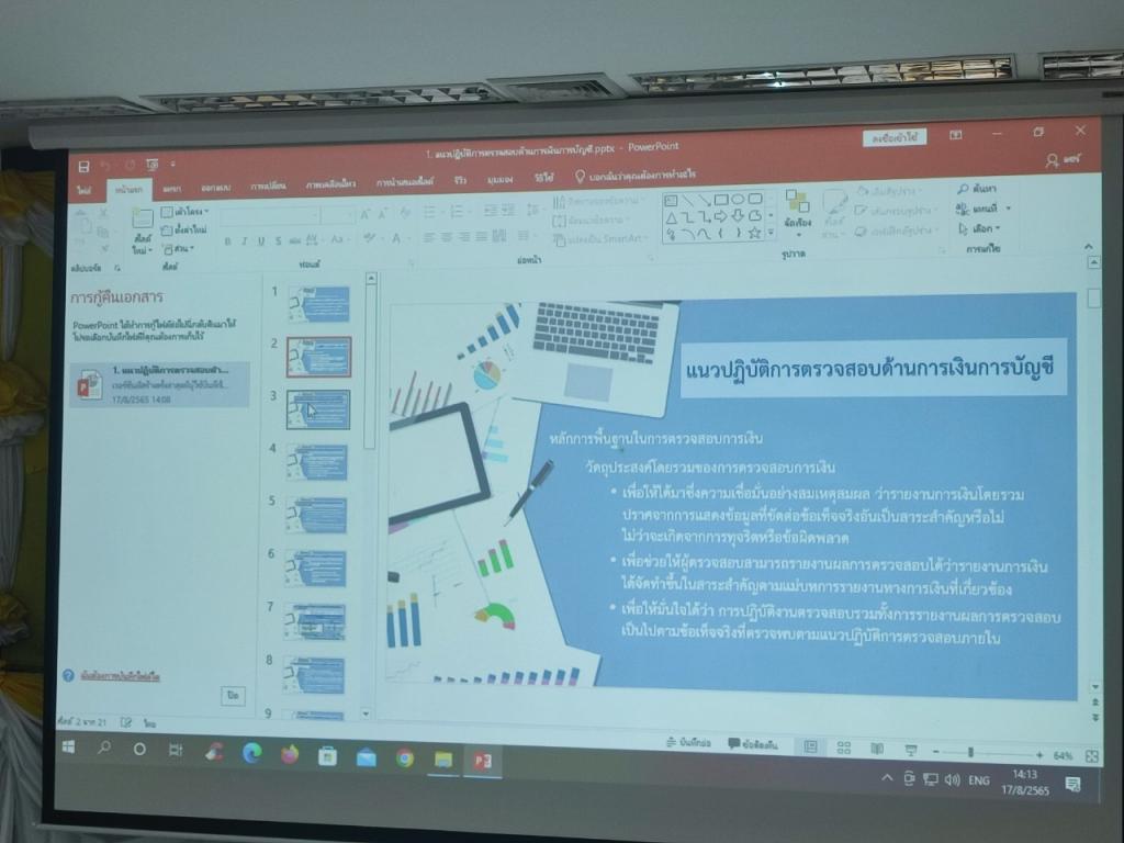 สำนักงานตรวจสอบภายในได้จัดโครงการพัฒนาแนวปฏิบัติการตรวจสอบด้านการดำเนินงาน และการตรวจสอบด้านการเงินและบัญชี (Establishment of Practices on Performance Audit and Financial Audit)ระหว่างวันที่ 17-19 สิงหาคม 2565 ณ ห้องประชุมพิบูลมังสาหาร ชั้น 3 สำนักงานอธิการบดี (ใหม่) มหาวิทยาลัยอุบลราชธานี การจัดอบรมในครั้งนี้ เป็นส่วนหนึ่งของการพัฒนาบุคลากรของสำนักงานตรวจสอบภายใน ซึ่งมีความจำเป็นต้องได้รับการพัฒนาความรู้และทักษะในด้านต่าง ๆ ในการปฏิบัติงานตามแผนการตรวจสอบประจำปี โดยมีวัตถุประสงค์เพื่อพัฒนาแนวปฏิบัติการตรวจสอบดังกล่าวและเป็นการเสริมสร้างความรู้ ความเข้าใจในเทคนิคและวิธีการตรวจสอบให้กับผู้ตรวจสอบภายใน ทั้งนี้ มีกลุ่มเป้าหมาย คือ ผู้ตรวจสอบภายในของมหาวิทยาลัยอุบลราชธานี จำนวน 5 คน