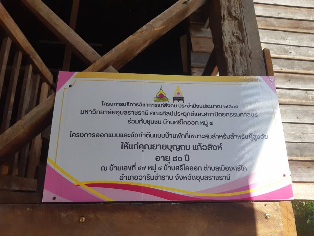 สำนักงานตรวจสอบภายใน เดินหน้าตรวจสอบผลผลิตและผลลัพธ์ จากตัวอย่างกรณีศึกษาบ้านพักอาศัยสำหรับผู้สูงวัยในเขตพื้นที่ตำบลเมืองศรีโค อำเภอวารินชำราบ จังหวัดอุบลราชธานี ภายใต้โครงการบริการวิชาการ "การออกแบบปรับปรุงบ้านพักอาศัยที่เหมาะสมสำหรับผู้สูงวัย" ประจำปีงบประมาณ พ.ศ. 2567 ซึ่งเป็นผลงานที่สำคัญและโดดเด่นของคณะศิลปประยุกต์และสถาปัตยกรรมศาสตร์ มหาวิทยาลัยอุบลราชธานี เป็นต้นแบบในการดำเนินงานตามทิศทางการบริหารมหาวิทยาลัย ด้านการยกระดับคุณภาพชีวิตให้แก่สังคม
