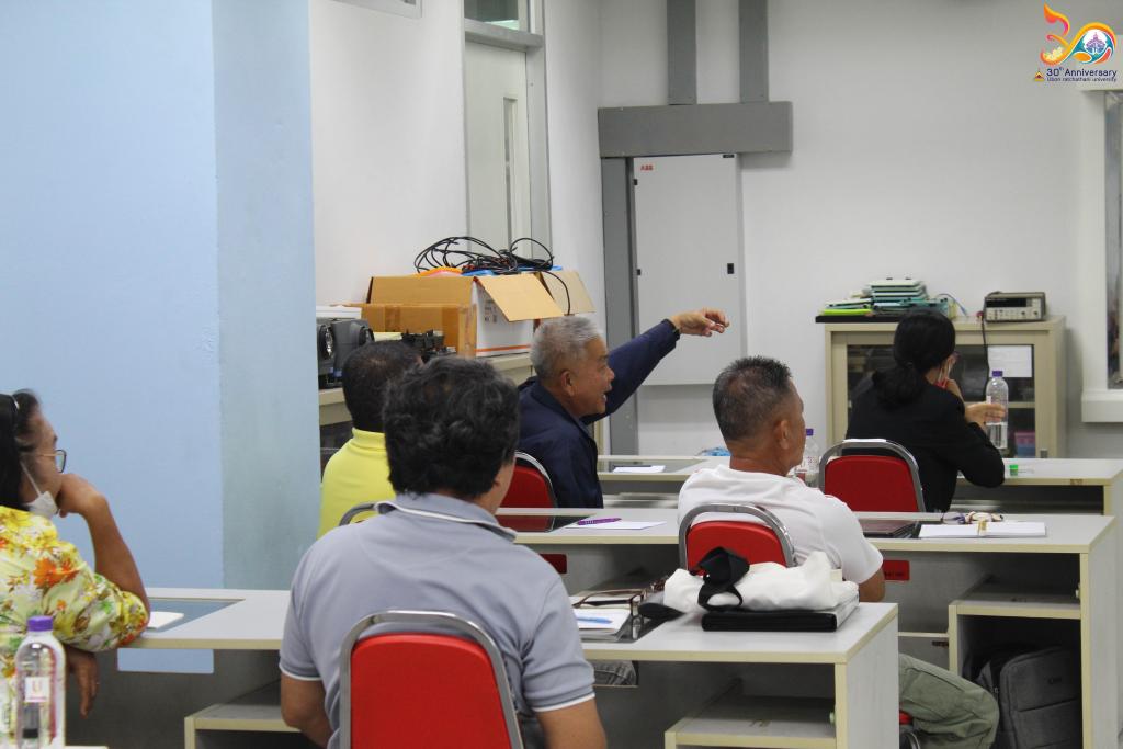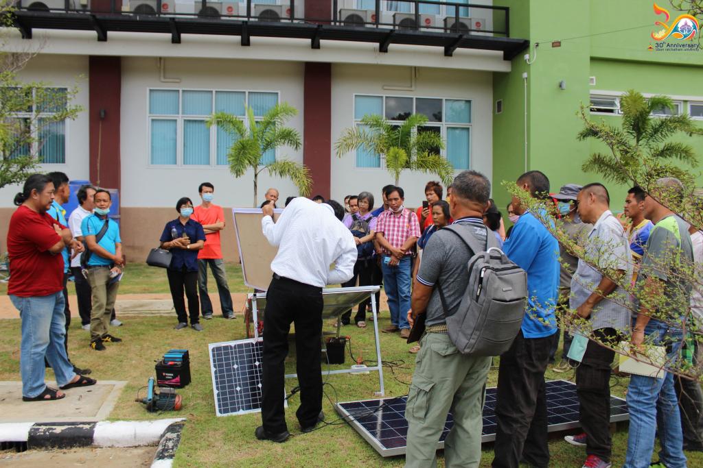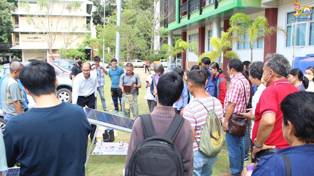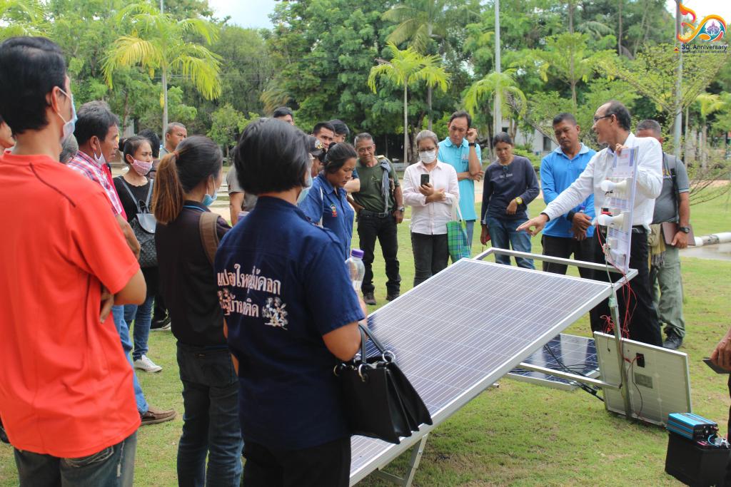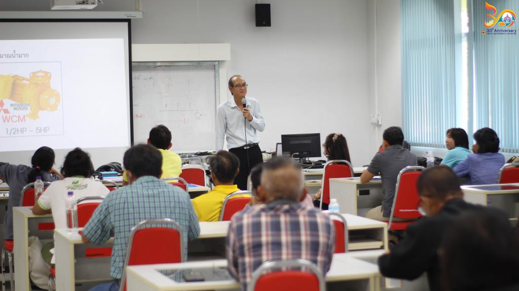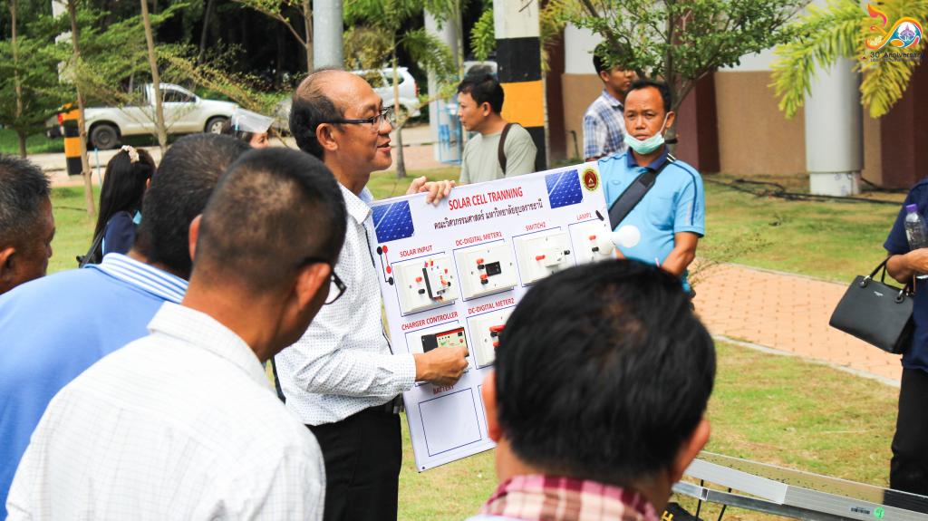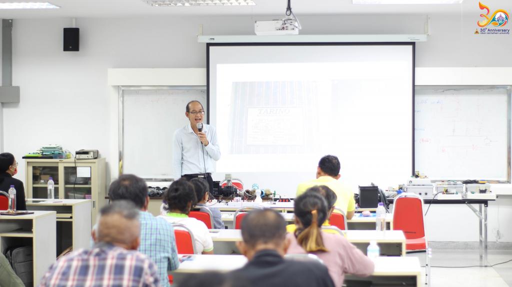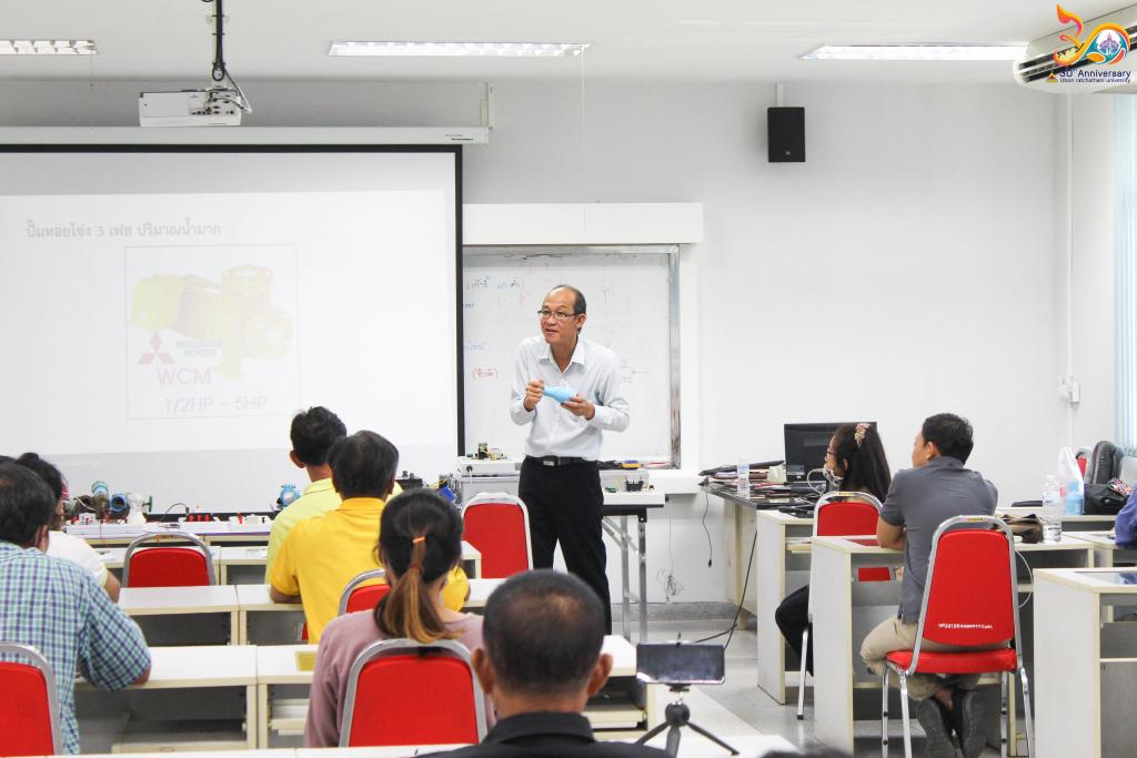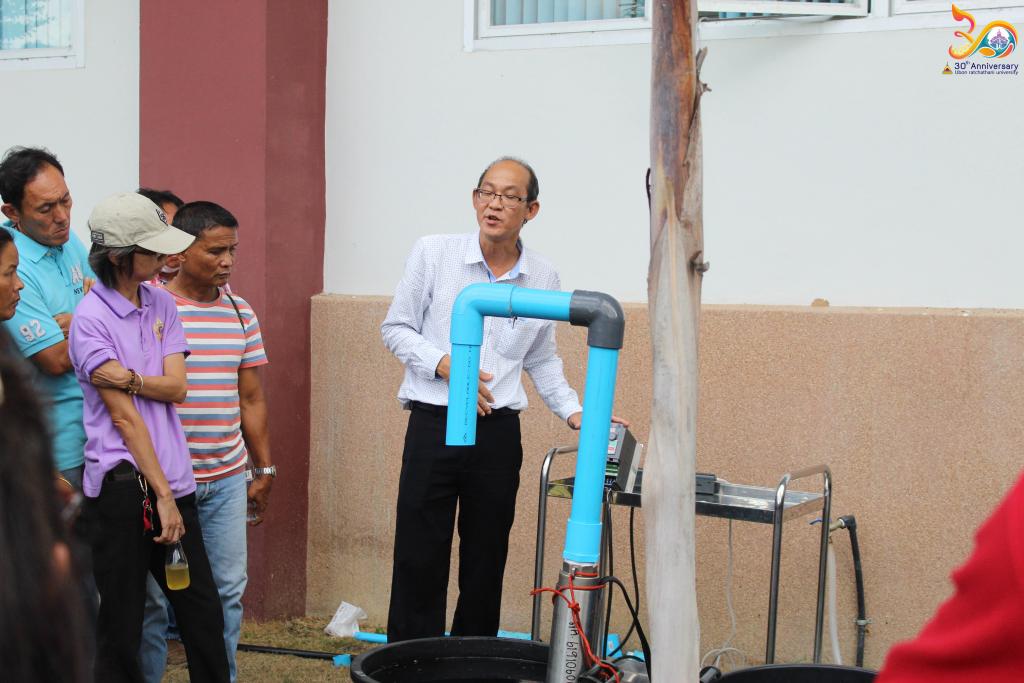 โดยได้รับเกียรติจาก ผู้ช่วยศาสตราจารย์มงคล ปุษยตานนท์ คณบดีคณะวิศวกรรมศาสตร์และผู้ช่วยศาสตราจารย์บงกช สุขอนันต์ กล่าวต้อนรับทางผู้เข้าร่วมการอบรมและเป็นวิทยากรในการอบรมในครั้งนี้ ซึ่งเนื้อหาการบรรยายเป็นการจัดการระบบให้น้ำพืชด้วยระบบควบคุมอย่างง่าย (เรียนรู้เรื่องการจัดการระบบจ่ายน้ำการเกษตรเบื้องต้น เช่น การเลือกแหล่งน้ำ ปั๊มน้ำ การออกแบบระบบจ่ายน้ำ การเลือกท่อและอุปกรณ์จ่ายน้ำ ระบบควบคุมเบื้องต้น พร้อมสาธิตการติดตั้ง และลงมือปฏิบัติจริง) หัวข้อที่ 2 เป็นการออกแบบและติดตั้งระบบโซล่าร์เซลล์เพื่อการเกษตร (พื้นฐานการออกแบบระบบจ่ายพลังงานไฟฟ้าด้วยแผงโซล่าร์เซลล์ การเลือกอุปกรณ์ ขนาดของสายไฟ แบตเตอรี่ ขนาดของปั๊มน้ำ และอุปกรณ์ป้องกันต่าง ๆ พร้อมสาธิตการติดตั้งและทดลองประกอบอุปกรณ์)