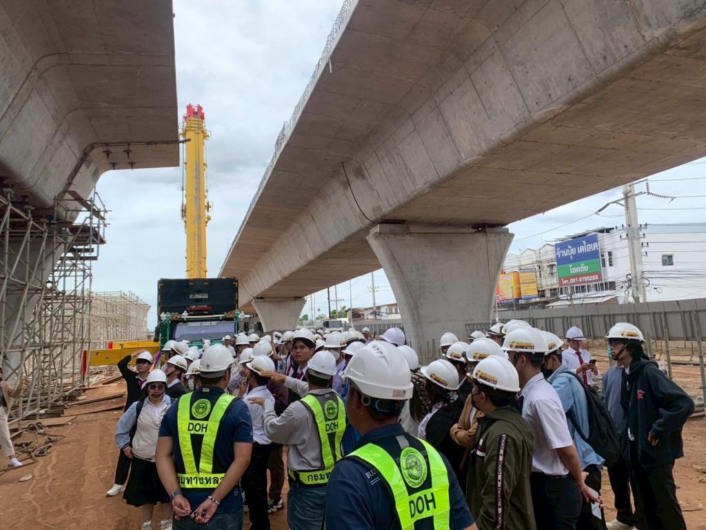 ในวันที่ 23 กรกฎาคม 2568 คณาจารย์ภาควิชาวิศวกรรมโยธา นำโดย ดร.ฉัตรภูมิ วิรัตนจันทร์ และอาจารย์โตมร หลินหะตระกูล ได้นำนักศึกษาวิศวกรรมโยธาชั้นปีที่ 4 ไปดูงานนอกสถานที่ ณ โครงการก่อสร้างสะพานข้ามทางแยกจุดตัดทางหลวงหมายเลข 24 กับ 224 (แยกโชคชัย) จังหวัดนครราชสีมา ภายใต้การกำกับดูแลของกรมทางหลวง