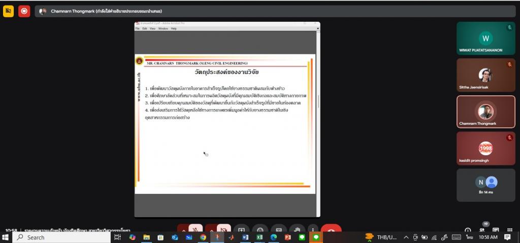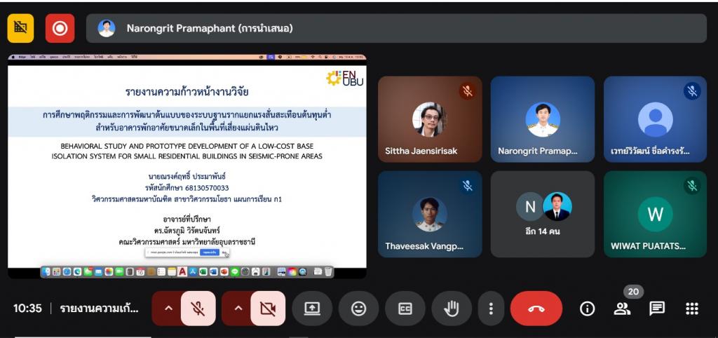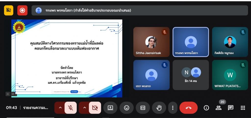 หลักสูตรบัณฑิตศึกษา สาขาวิศวกรรมโยธาได้จัดกิจกรรมายงานความก้าวหน้าวิทยานิพนธ์ของนักศึกษาระดับบัณฑิตศึกษา ภาคการศึกษาต้น ปีการศึกษา 2568 ให้แก่นักศึกษาในระดับบัณฑิตศึกษาของหลักสูตรเพื่อเป็นการกำกับและติดตามความก้าวหน้าในการทำวิทยานิพนธ์และการแลกเปลี่ยนประสบการณ์ระหว่างอาจารย์ นักศึกษาและบัณฑิต โดยกิจกรรมนี้ได้จัดขึ้นผ่านระบบออนไลน์ในวันนพฤหัสบดีที่ 16 ตุลาคม 2568 เวลา 09.00 - 12.00 น.