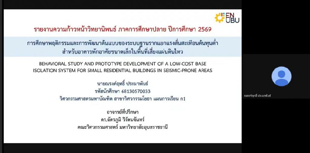 หลักสูตรบัณฑิตศึกษา สาขาวิศวกรรมโยธาได้จัดกิจกรรมรายงานความก้าวหน้างานวิจัย และนำเสนอแผนการเรียน/วิจัย ระดับบัณฑิตศึกษา ภาคการศึกษาปลาย ปีการศึกษา 2568 สาขาวิชาวิศวกรรมโยธา ให้แก่นักศึกษาระดับบัณฑิตศึกษาของหลักสูตรเพื่อเป็นการกำกับและติดตามความก้าวหน้าในการทำวิทยานิพนธ์ในปลายภาคการศึกษา รวมถึงการแลกเปลี่ยนประสบการณ์ระหว่างอาจารย์ นักศึกษาและบัณฑิตถึงอุปสรรคต่างๆ ที่เกิดขึ้นระหว่างการทำวิจัย