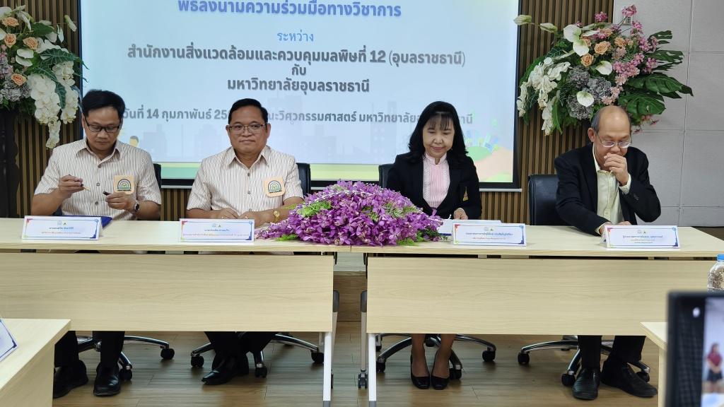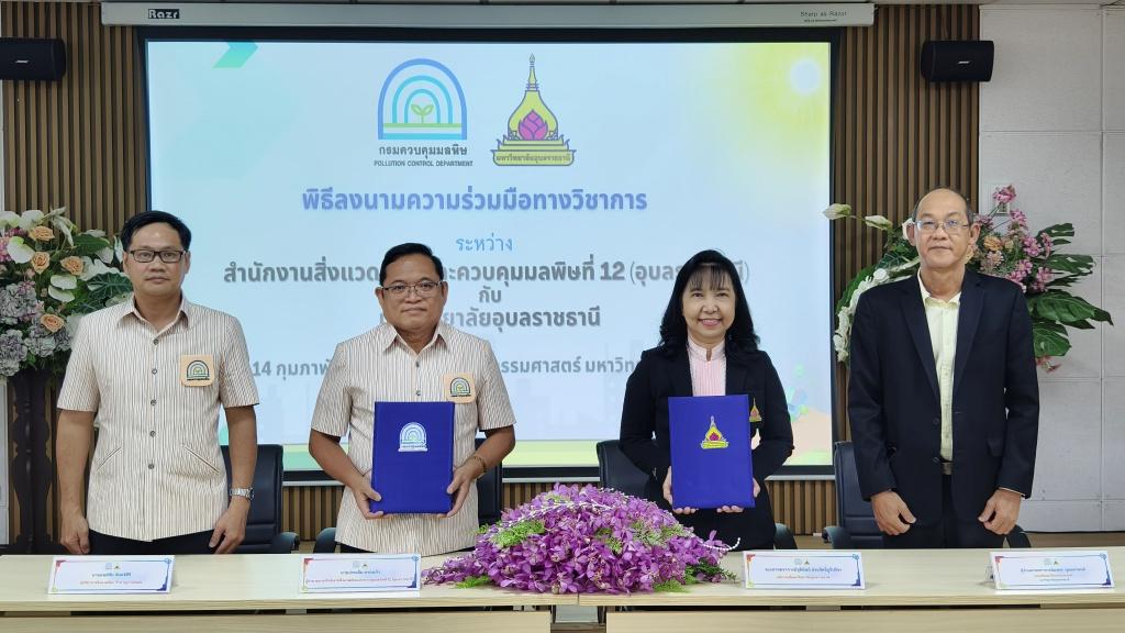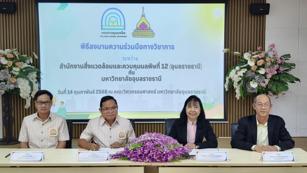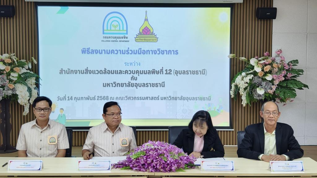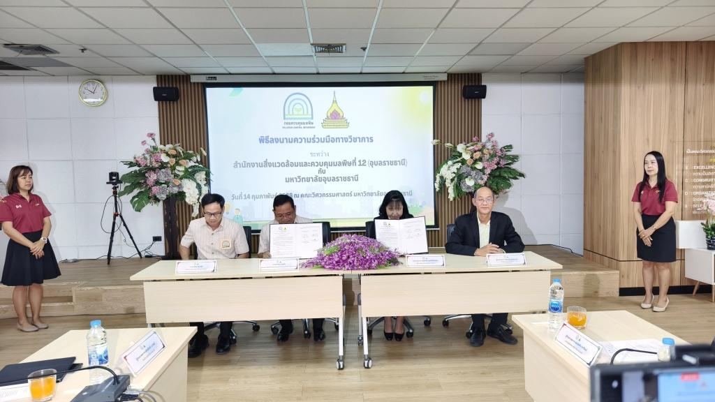 เมื่อวันที่ 14 กุมภาพันธ์ 2568 คณะวิศวกรรมศาสตร์ มหาวิทยาลัยอุบลราชธานี และ สำนักงานสิ่งแวดล้อมและควบคุมมวลพิษที่ 12 (อุบลราชธานี) ร่วมพิธีลงนามความร่วมมือทางวิชาการ โดยมีรองศาสตราจารย์ ดร.ชุตินันท์ ประสิทธิ์ภูริปรีชา อธิการบดีมหาวิทยาลัยอุบลราชธานีและนายประเดิม ภาคแก้ว ผู้อำนวยการสำนักงานสิ่งแวดล้อมและควบคุมมวลพิษที่ 12และนายมนต์ชัย จันทร์ศิริ นักวิชาการสิ่งแวดล้อมชำนาญการพิเศษ ร่วมลงนาม โดยมีผู้ช่วยศาสตราจารย์ ดร.เกรียงศักดิ์ แก้วกุลชัย รองอธิการบดีผ่ายบริการ ผู้ช่วยศาสตราจารย์ ดร.มงคล ปุษยตานนท์ คณบดีคณะวิศวกรรมศาสตร์ มหาวิทยาลัยอุบล และคณะผู้บริหารและแขกผู้มีเกียรติร่วมเป็นสักขีพยานการลงนามในครั้งนี้ ณ ห้องประชุม EN6314A