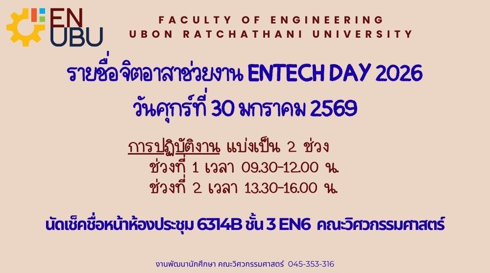 รายชื่อนักศึกษาจิตอาสาช่วยงาน ENTECH DAY 2026