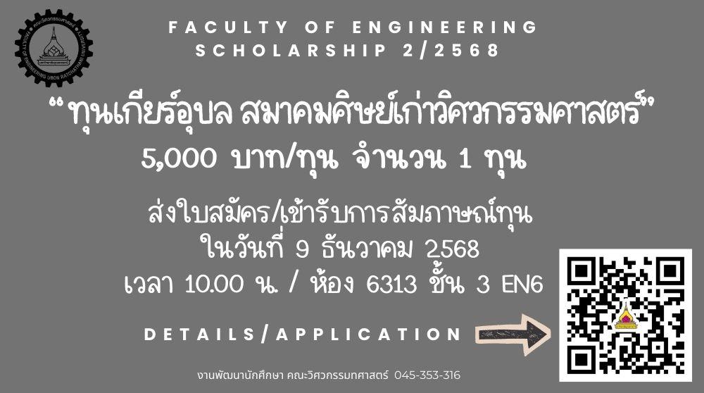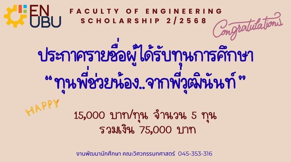ทุนการศึกษาคณะวิศวกรรมศาสตร์ ภาคเรียนที่ 2/2568
