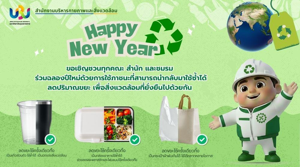 ขอเชิญชวนทุกคณะ สำนัก และชมรม ร่วมฉลองปีใหม่ด้วยการใช้ภาชนะที่สามารถนำกลับมาใช้ซ้ำได้ ลดปริมาณขยะ สร้างสังคมสีเขียว เพื่อความยั่งยืนไปด้วยกัน6 มกราคม 2569