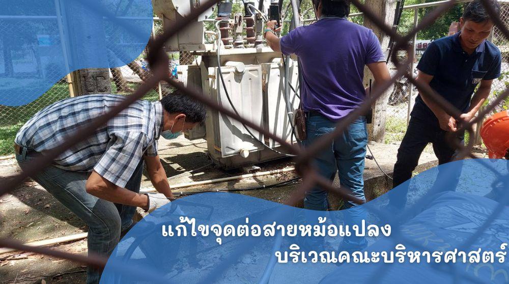 การแก้ไขจุดต่อสายหม้อแปลง บริเวณคณะบริหารศาสตร์