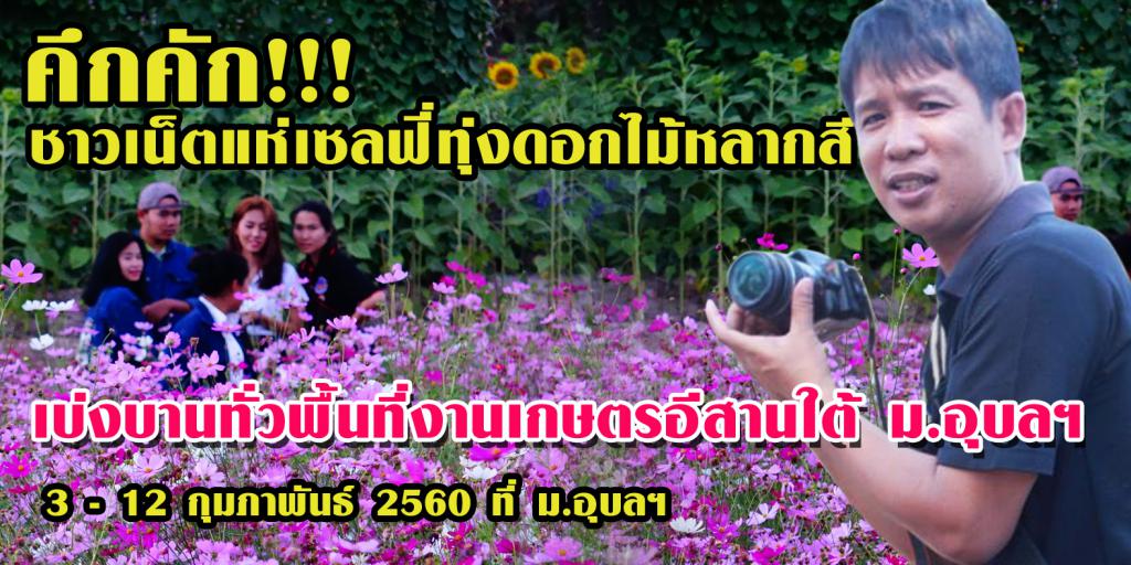 บรรยากาศในพื้นที่ มหาวิทยาลัยอุบลราชธานี เริ่มคึกคัก ภายหลังจากทุ่งดอกไม้หลากสีเริ่มเบ่งบานขยายวงกว้างเต็มลานบริเวณด้านหลังกังหันลม ซึ่งเป็นจุดแลนด์มาร์คสำคัญของ งานเกษตรอีสานใต้ โดยงานกำหนดจัดขึ้นระหว่างวันที่ 3 - 12 กุมภาพันธ์ 2560 ภายใต้หัวข้อ “สร้างสรรค์แผ่นดินพ่อ สานต่อเกษตรพอเพียง” พร้อมด้วยกิจกรรมหลากหลายที่ทุกคนไม่ควรพลาด อาทิ นิทรรศการเกษตรมีชีวิต แปลงสาธิตทางการเกษตร การเสวนาวิชาการ การประกวดแข่งขัน จำหน่ายเครื่องมือ อุปกรณ์และจักรกลทางการเกษตร สินค้าชุมชน/สินค้า OTOP และพันธุ์ไม้นานาชนิด เป็นต้น