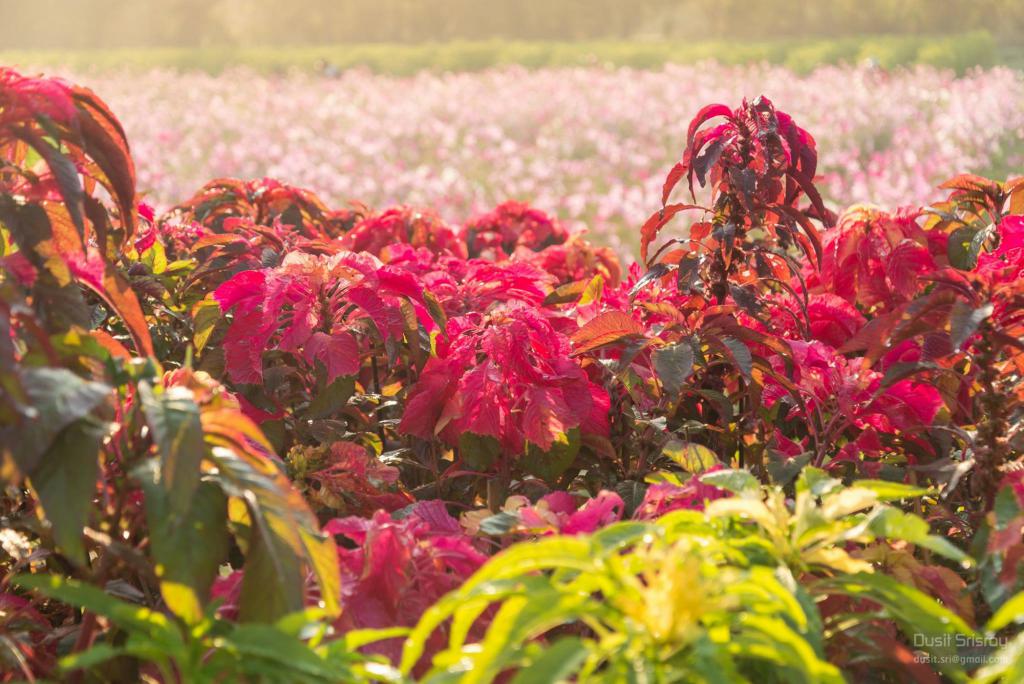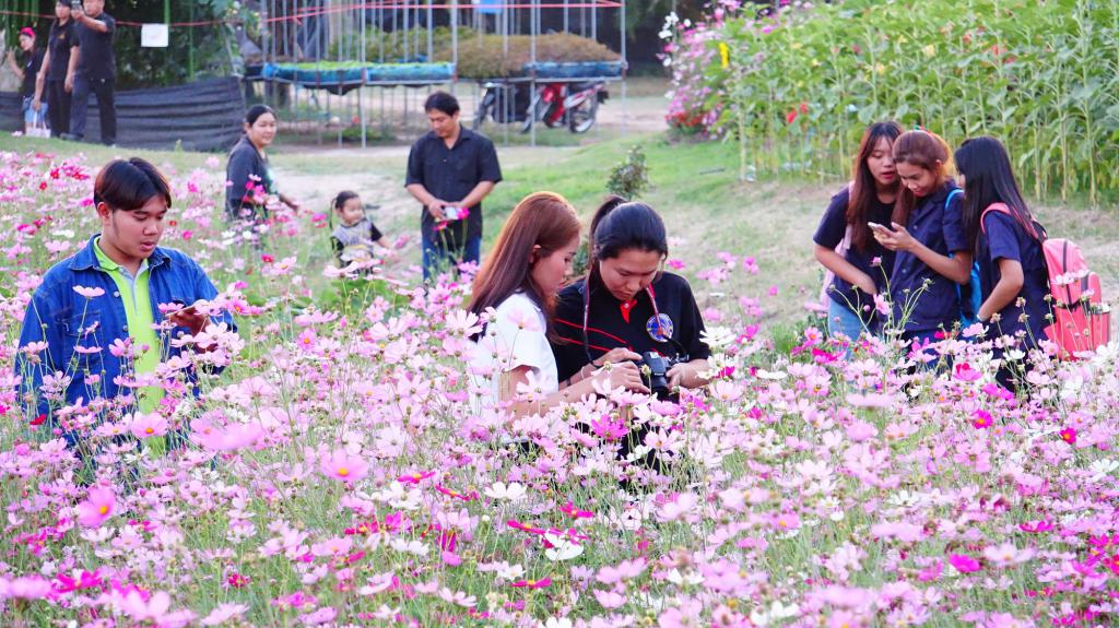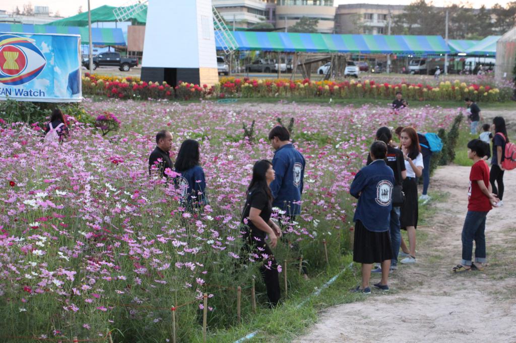 ในส่วนของทุ่งดอกไม้หลากสี ที่ได้รับความสนใจจากนักศึกษา ประชาชนทั่วไปที่ทราบข่าว ภายหลังจากชาวเน็ตได้โพสภาพความงาม บรรยายกาศของท้องทุ่งดอกไม้นานาชนิด ที่มีสีสันสดใส สวยงาม อาทิ ทุ่งดอกดาวกระจาย ดอกเงาะถอดรูป ทุ่งทานตะวัน ซัลเวียดอกสีม่วง มอร์นิ่งกลอรี่ ไม้เลื้อยขึ้นระแนง เป็นต้น โดยเฉพาะบรรยายกาศยามเช้าตรู่ที่ดูสดใสกับสายหมอกบางที่ตกกระทบกิ่งใบและดอกเป็นหยดน้ำค้าง ถ่ายทอดผ่านชัตเตอร์ช่างภาพได้อย่างงดงาม หรือจะบรรยากาศยามเย็นที่มีแสงอาทิตย์ลับฟ้าดูอบอุ่นยิ่ง อยากสัมผัสความรู้สึกดีๆกลิ่นไอธรรมชาติงดงาม ไม่ต้องเดินทางไกลถึงเมืองเหนือ ที่นี่มีคำตอบให้กับทุกคน “เกษตรอีสานใต้‘60ม.อุบลฯ”