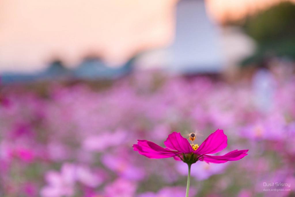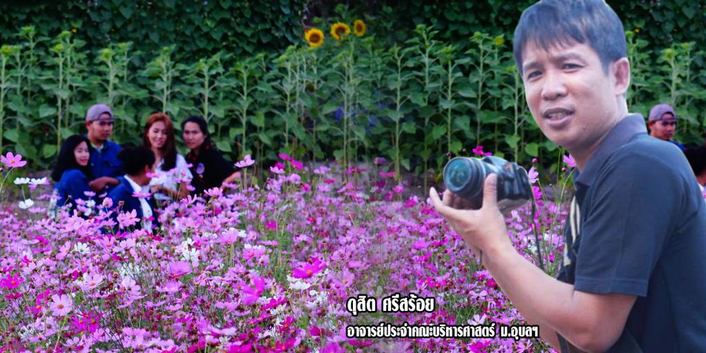 อาจารย์ดุสิต ศรีสร้อย อาจารย์ประจำคณะบริหารศาสตร์ ม.อุบลฯ หนึ่งในผู้ชื่นชอบงานอดเรกด้านการถ่ายภาพกล่าวว่างานเกษตรอีสานใต้ มหาวิทยาลัยอุบลราชธานี ถือว่าเป็นสวรรค์ของคนที่ชื่นชอบการถ่ายภาพ เนื่องจากในทุกๆปีหน่วยงานทั้งในและนอกมหาวิทยาลัยจะร่วมกันจัดพื้นที่่สำหรับแสดงผลผลิตและเทคโนโลยีทางการเกษตร ทั้งไม้ดอก ไม้ผล สัตว์ เป็นต้นเรียกได้ว่าทุกอย่างครบจบในที่เดียว ซึ่งในแต่ละปีตนจะแวะมาเก็บภาพแห่งความประทับใจ เป็นการฝึกฝีมือและประสบการณ์ไปด้วย ในแต่ละช่วงภาพที่ออกมาจะให้ความรู้สึกที่แตกต่างกันไป เช่น ช่วงเช้าและช่วงเย็นเป็นช่วงเวลาที่เราจะได้แสงและสีที่แปลกตา โดยเฉพาะท้องฟ้าที่จะเปลี่ยนไปเรื่อยๆและจะไม่ซ้ำกันเลยในแต่ละช่วงเวลา ดังนั้นเวลาห่างกันแค่ 1 นาทีเราอาจได้ภาพที่ต่างกันหลายใบเลยทีเดียว ส่วนตัวแล้วตนชอบตอนเช้าๆมากที่สุด เพราะทุกอย่างจะดูสดเป็นพิเศษ อากาศเย็นๆ มีน้ำค้างหรือบางทีถ้าโชคดีก็จะได้เจอหมอกเป็นของแถม ซึ่งช่วงเช้าและช่วงเย็นเหมาะสำหรับการถ่ายภาพกลางแจ้ง โดยเฉพาะโซนไม้ดอกและทุ่งทานตะวันตรงกังหันลมเหมาะมาก อยากได้ท้องฟ้าสีแดงๆ ส้มๆ ก็หันหลังให้ดวงอาทิตย์ ถ้ากลัวหน้าดำก็ใช้แฟลตช่วยก็ได้
