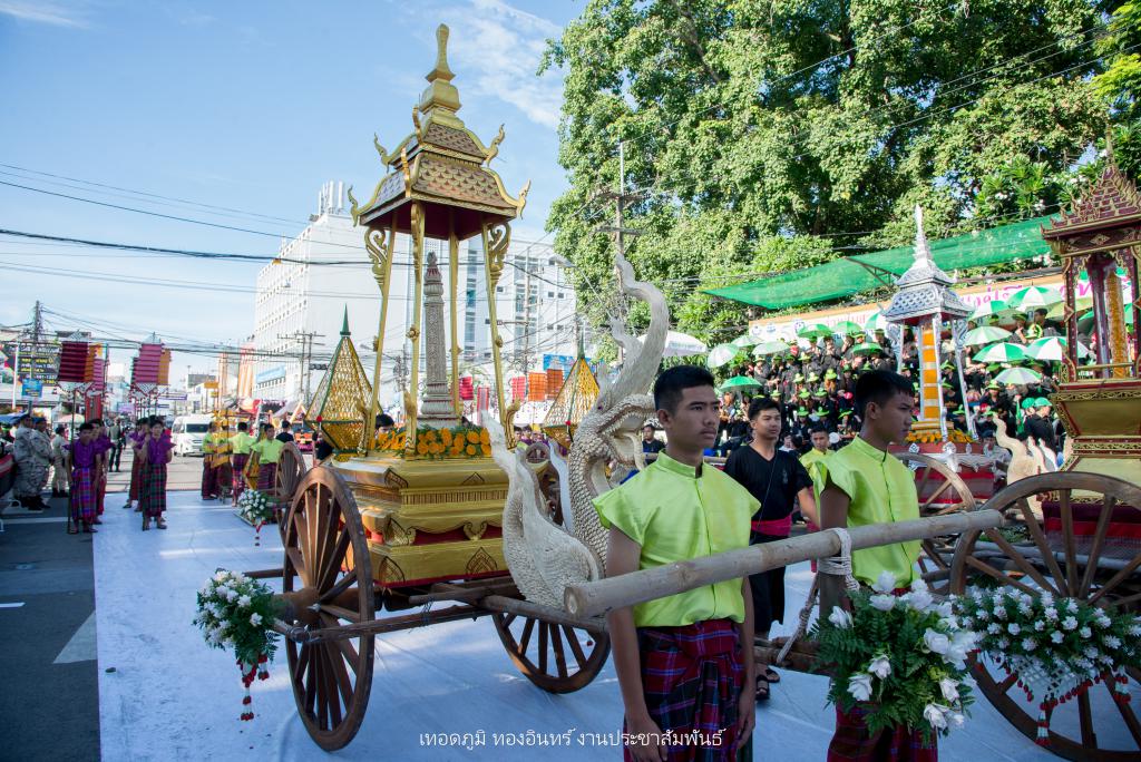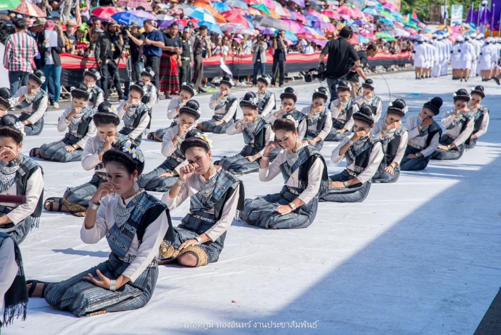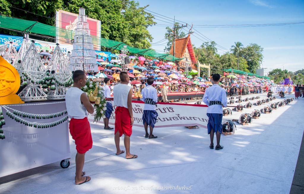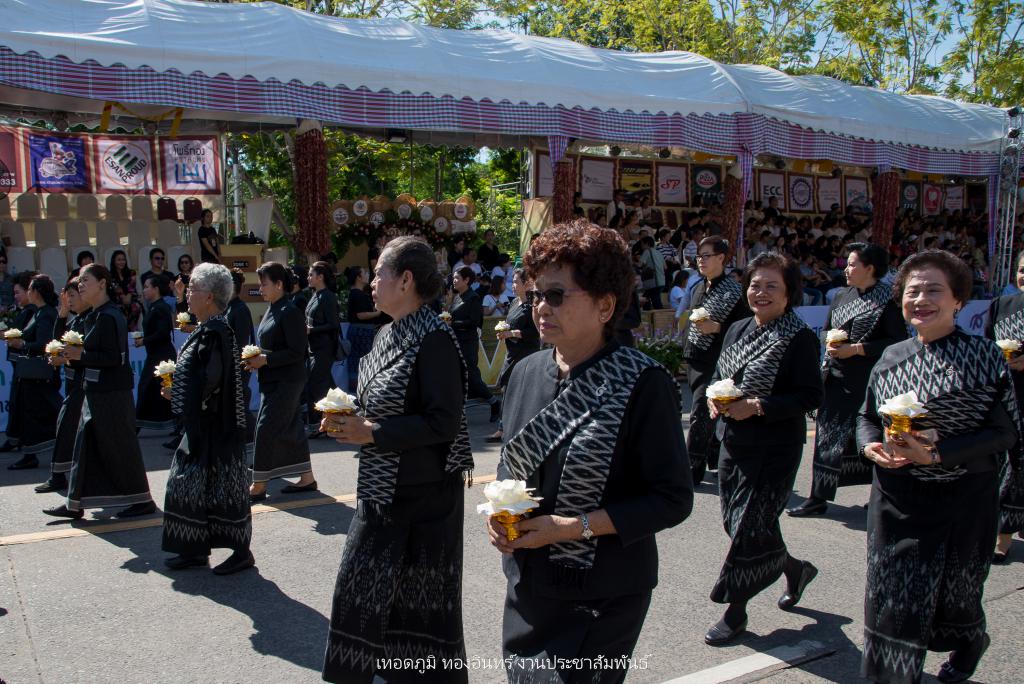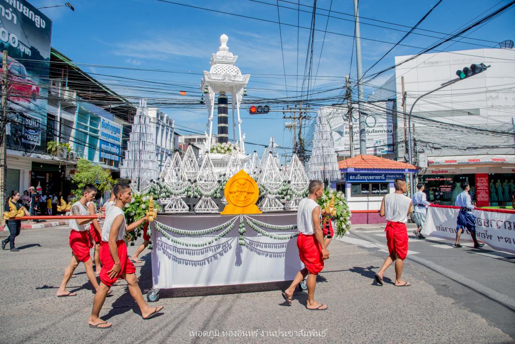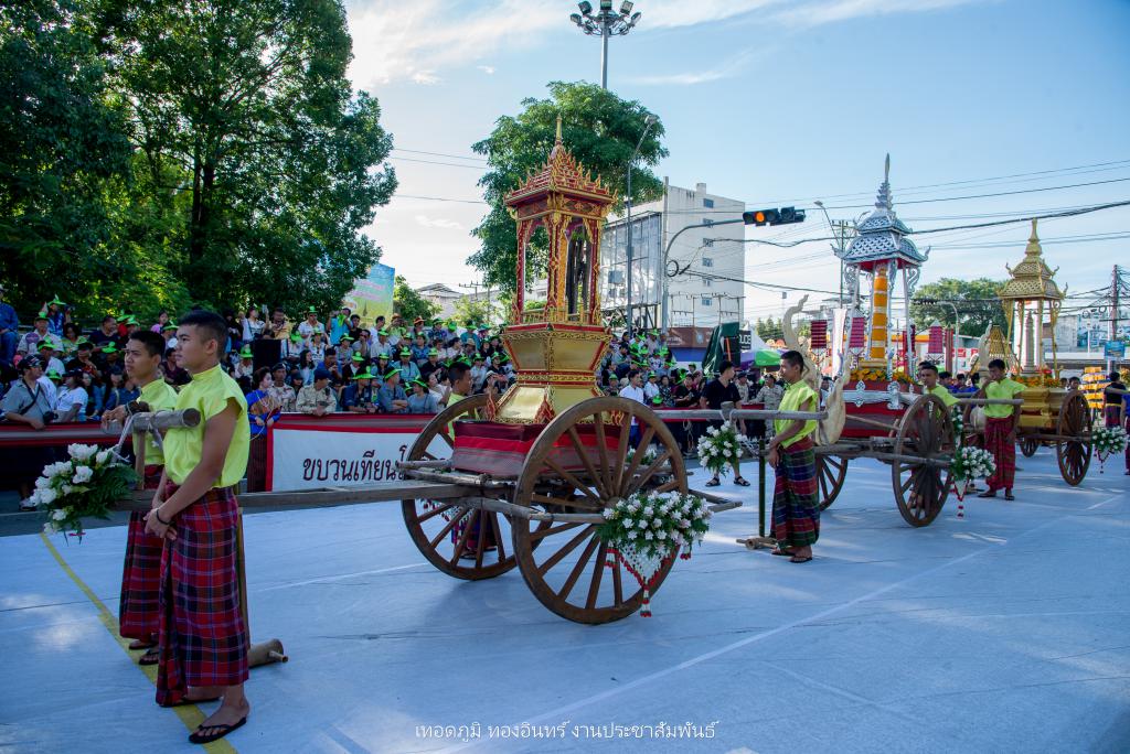 ซึ่งการจัดทำขบวนเทียนถวายอาลัย ประกอบไปด้วย บุษบกเทียนแบบศิลปะล้านช้าง ขนาด 1.20 เมตร ยาว 1.20 เมตร สูง 1.80 เมตร พร้อมเทียนมัดรวมแบบศิลปะอุบล ขนาดเส้นผ่าศูนย์กลาง 1 ฟุต สูง 1.20 เมตร ตกแต่งลายเทียนติดพิมพ์สีขาว ในโครงสร้างภาพรวมเน้นโทนสีดำ-สีขาว จัดทำส่วนประกอบตกแต่ง ประกอบด้วยผาสารทผึ้ง ฐานดอกบัวอุบล จำนวน 15 ชุด โครงสร้างไม้ไผ่สาน ทาสีดำติดขอบด้วยผ้าขาวพับกลีบรูปแบบจับจีบลายใบตอง พร้อมฉัตรเทียน 9 ชั้น จำนวน 4 ชุด ตกแต่งด้วยมาลัยดอกรักประดิษฐ์ ขนาด 4 x 4 เมตร พร้อมขบวนดอกไม้จันทน์ จำนวน 89 คน จาก ชมรมผู้สูงอายุ สโมสรไลออน และเหล่ากาชาดอุบลฯ เพื่อแสดงออกถึงความอาลัย และแสดงความจงรักภักดีพร้อมน้อมรำลึกถึงพระมหากรุณาธิคุณอันหาที่สุดมิได้ ของพระบาทสมเด็จพระปรมินทรมหาภูมิพลอดุลยเดช รัชการที่ 9