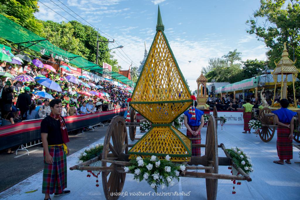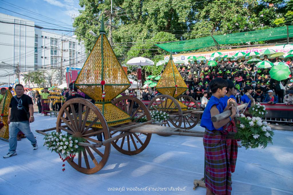 ในส่วนของ ขบวนเทียนโบราณ มีการจัดทำต้นเทียนแบบมัดรวม ต้นเทียนแบบแกะสลัก ต้นเทียนแบบติดพิมพ์ พร้อมบุษบก จัดตั้งบนเกวียนพร้อมตกแต่ง พร้อมบุษบก จัดทำผาสารทผึ้งแบบโบราณอีสาน ขนาด 80 x 80 x 1.50 เมตร จัดตั้งบนเกวียนพร้อมตกแต่ง 2 ชุด ผาสารทผึ้งแบบโบราณ ขนาด 60 x 60 x 1.20 เมตร จัดตั้งบนคานหามพร้อมตกแต่ง จำนวน 2 ชุด จัดทำเทียนกิ่งแบบโบราณ จำนวน 2 ชุด
