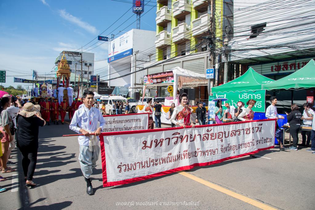 วันที่ 9 กรกฎาคม 2560 มหาวิทยาลัยอุบลราชธานี ร่วมสืบสานประเพณีแห่เทียนพรรษาอุบลราชธานี ด้วยการส่งขบวนเทียนถวายอาลัยและขบวนเทียนโบราณ ร่วมในขบวนพิธีแห่เทียนพรรษาอุบลราชธานี ประจำปี 2560 ซึ่งครบรอบ 116 ปีของการจัดงานประเพณี ทั้งนี้เพื่อเป็นการสืบสานประเพณีให้คงอยู่ ส่งเสริมการท่องเที่ยวและกระตุ้นเศรษฐกิจ โดยมี นายสมศักดิ์ จังตระกุล ผู้ว่าราชการจังหวัดอุบลราชธานี เป็นประธานในพิธีเปิด ณ บริเวณหน้าวัดศรีอุบลรัตนาราม อ.เมือง จ.อุบลราชธานี