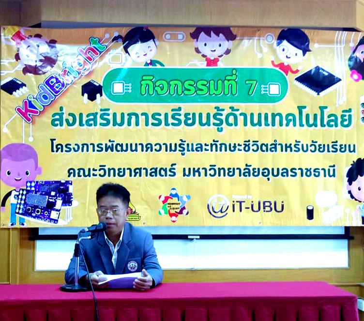 นายอนุพงษ์ รัฐิรมย์ อาจารย์ประจำสาขาวิชาเทคโนโลยีสารสนเทศ คณะวิทยาศาสตร์ มหาวิทยาลัยอุบลราชธานี และหัวหน้าโครงการย่อยที่ 7 กิจกรรมส่งเสริมการเรียนรู้ด้านเทคโนโลยีสารสนเทศ กล่าวว่า สำหรับการลงพื้นที่จัดอบรมเชิงปฏิบัติการให้แก่โรงเรียนเดชอุดมครั้งนี้ ทางสาขาวิชาเทคโนโลยีสารสนเทศของเราได้นำความรู้ด้านเทคโนโลยีสารสนเทศเพื่อมาเพิ่มและพัฒนาความรู้ตลอดจนทักษะชีวิตสำหรับวัยเรียนด้านการสร้างและออกแบบแฟ้มสะสมผลงาน e-Portfolioด้วยแอปพลิเคชันบนสมาร์ทโฟน เพื่อประยุกต์ใช้แอปพลิเคชั่นที่มีให้ใช้ฟรีบนโทรศัพท์มือถือแบบ Smart Phone ในการสร้าง e-Portfolioเป็นส่วนหนึ่งของการประยุกต์ใช้กับเทคโนโลยี เพื่อสนองนโยบายรัฐ “Thailand 4.0”ซึ่งปัจจุบันเป็นส่วนหนึ่งที่สำคัญสำหรับนักเรียนทุกระดับชั้น เนื่องจาก e-Portfolio เป็นแฟ้มสะสมผลงานอิเล็กทรอนิกส์ ที่จัดเก็บข้อมูล รูปภาพ ใช้งานง่าย สะดวกในการจัดเก็บ ตลอดจนการจัดการเอกสารต่างๆ สร้างความสะดวกสบายสำหรับผู้ใช้งาน ไม่ต้องลำบากจัดหาหรือซื้อแฟ้มจัดเก็บเอกสาร การเก็บรักษาที่ยุ่งยากเสี่ยงต่อการชำรุดเสียหาย ผู้ตรวจก็สามารถตรวจแฟ้มสะสมผลงานหรือหลักฐานต่างๆ ผ่านทางอินเทอร์เน็ตได้ สำหรับการประยุกต์ใช้ loTในงาน Smart Homeและการใช้เทคโนโลยีอินเตอร์เน็ตของสรรพสิ่ง loT ทีมวิทยากรของเราได้นำเอา KidBright ซึ่งเป็นบอร์ดสมองกลฝังตัวที่สามารถทำงานตามชุดคำสั่ง โดยผู้เรียนสามารถสร้างชุดคำสั่งผ่านโปรแกรม KidBright IDE บนคอมพิวเตอร์ ที่ใช้งานง่าย เพียงใช้การลากบล็อกคำสั่งมาวางต่อกัน (Drag and Drop) ช่วยลดความกังวลเรื่องการพิมพ์ชุดคำสั่งผิด ชุดคำสั่งที่ถูกสร้างดังกล่าวจะถูกส่งไปที่บอร์ด KidBright ให้ทำงานตามที่โปรแกรมสร้างไว้ เช่น รดน้ำต้นไม้ตามระดับความชื้นที่กำหนด หรือเปิด - ปิดไฟตามเวลาที่กำหนด เป็นต้น ซึ่ง KidBright มุ่งเน้นให้ผู้เรียนได้พัฒนากระบวนการคิดเชิงตรรกะ ร่วมกับความคิดสร้างสรรค์ สามารถต่อยอดสู่การพัฒนาแอปพลิเคชันและเทคโนโลยีด้วยตนเองในอนาคตได้