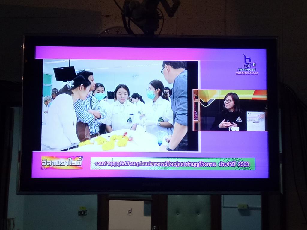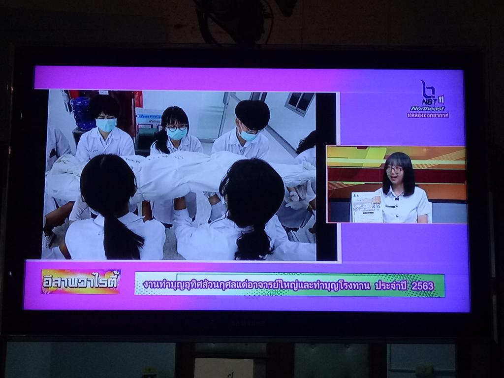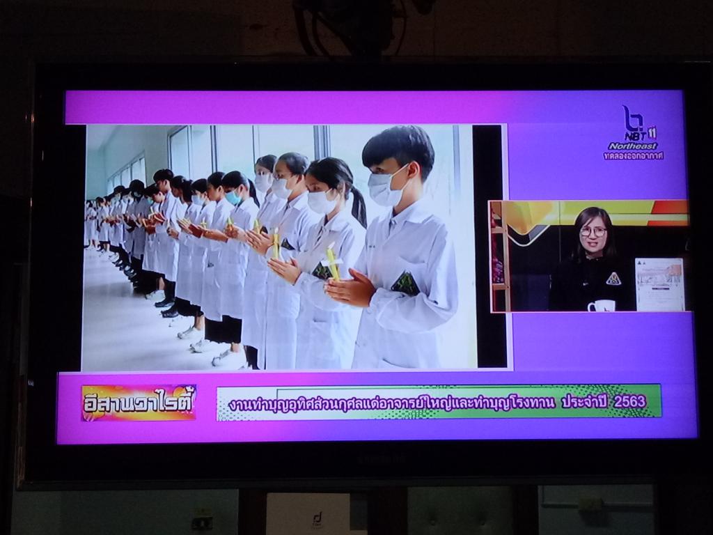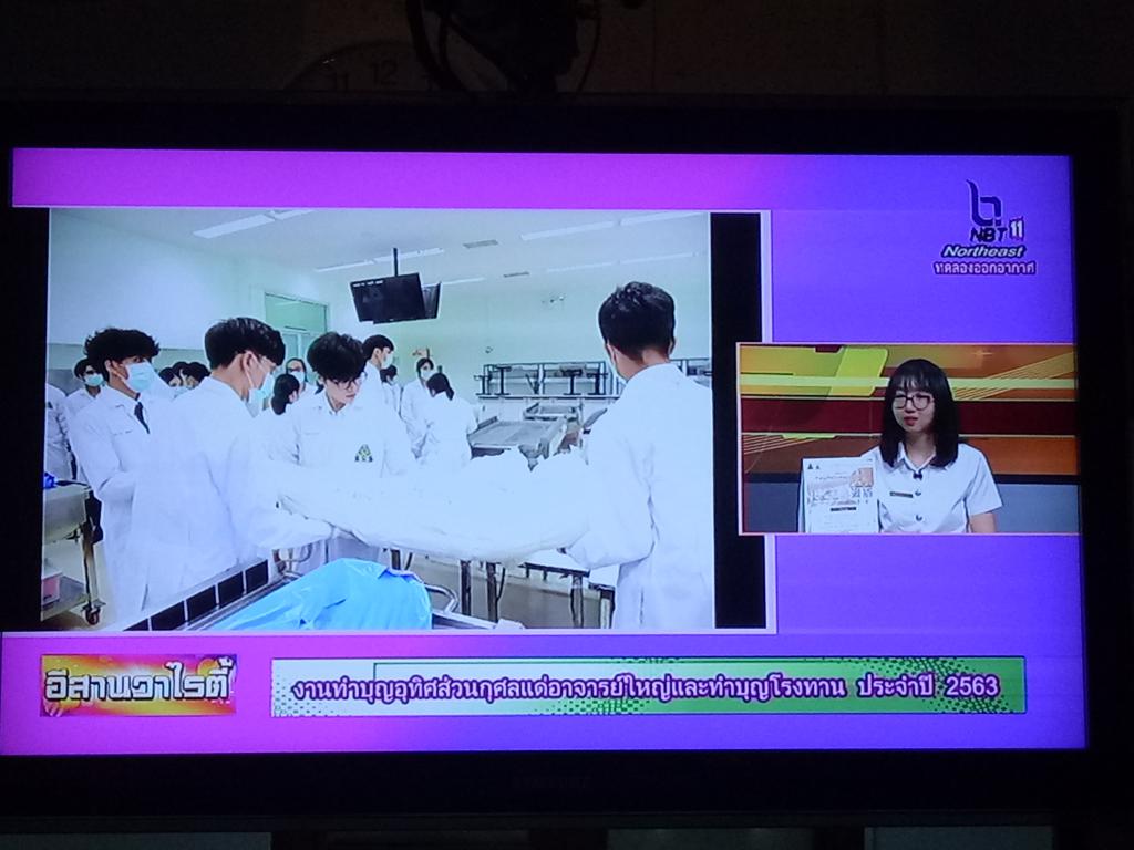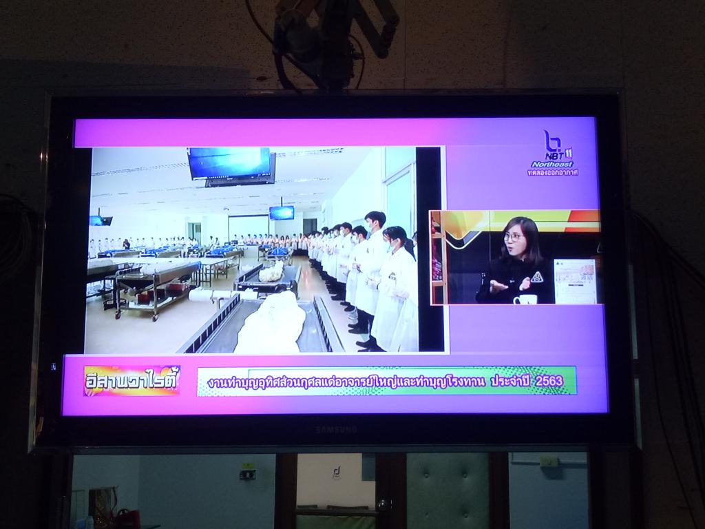 เมื่อวันพฤหัสบดีที่ 13 กุมภาพันธ์ 2563 มหาวิทยาลัยอุบลราชธานี ขอขอบคุณ สถานีวิทยุโทรทัศน์แห่งประเทศไทย จังหวัดอุบลราชธานี (NBT) และทีมงานฝ่ายรายการ สถานีวิทยุโทรทัศน์แห่งประเทศไทย จังหวัดอุบลราชธานีทุกท่าน ที่กรุณาให้ความอนุเคราะห์เวลาออกอากาศในรายการ “อีสานวาไรตี้” เพื่อประชาสัมพันธ์การจัด"งานทำบุญอุทิศส่วนกุศลแด่อาจารย์ใหญ่และทำบุญโรงทาน" ประจำปี 2563 โดยมี ผู้ช่วยศาสตราจารย์ ดร.รัตนา เล็กสมบูรณ์ อาจารย์ประจำหลักสูตรแพทยศาสตรบัณฑิต (พ.บ.) และ นางสาวชยาภา เบญจถาวรอนันท์ นักศึกษาแพทย์ชั้นปีที่ 2 วิทยาลัยแพทยศาสตร์และการสาธารณสุข มหาวิทยาลัยอุบลราชธานี และทำหน้าที่กรรมการฝ่ายประชาสัมพันธ์"งานทำบุญอุทิศส่วนกุศลแด่อาจารย์ใหญ่และทำบุญโรงทาน" ประจำปี 2563 ผู้ร่วมรายการและ นางสาวเพียรอักษร นามโสภา ผู้ดำเนินรายการ เพื่อประกอบพิธีกรรมทางศาสนา เพื่อสิริมงคลแด่นักศึกษา คณาจารย์และบุคคลากร ก่อนเรียนกายวิภาคศาสตร์ผ่านร่างอาจารย์ใหญ่ เพื่อให้นักศึกษาแสดงความกตัญญูกตเวทีต่อพระคุณของอาจารย์ใหญ่ โดยการจัดงานทำบุญอุทิศส่วนกุศลแด่อาจารย์ใหญ่ และเพื่อเป็นการเผยแพร่คุณงามความดีของอาจารย์ใหญ่และเป็นเกียรติแก่วงศ์ตระกูลของอาจารย์ใหญ่ ซึ่งกำหนดจัดขึ้น ในวันเสาร์ที่ 7 มีนาคม พ.ศ. 2563 เริ่มกิจกรรม เวลา 07.00 - 11.30 น. ณ อาคารกายวิภาคศาสตร์วิทยาลัยแพทยศาสตร์และการสาธารณสุข มหาวิทยาลัยอุบลราชธานี ซึ่งจะเริ่มลงทะเบียน 06.00 น. และช่วงเวลา 07.00 น. จะมีพิธีพิธีทำบุญตักบาตรพระภิกษุสงฆ์ จำนวน 29 รูป และถวายภัตตาหารเช้าและฟังพระธรรมเทศนา จากนั้นช่วง เวลา 11.30 น. จะเป็นพิธีไหว้ขอขมาอาจารย์ใหญ่ ซึ่งภายในงานจะมีโรงทานของผู้มีจิตศรัทธาและผู้ปกครองนักศึกษาให้บริการอาหารและเครื่องดื่ม ฟรีตลอดงาน