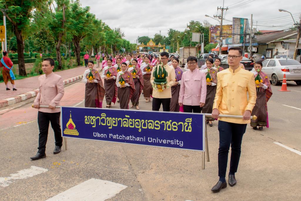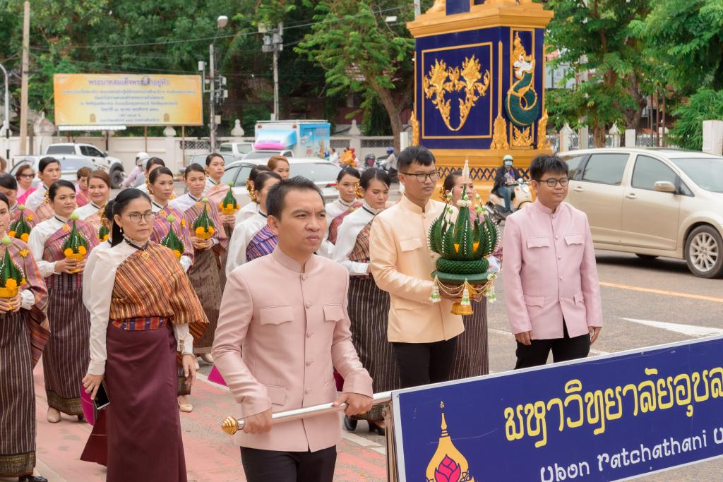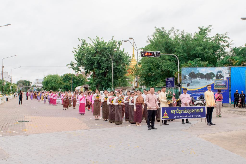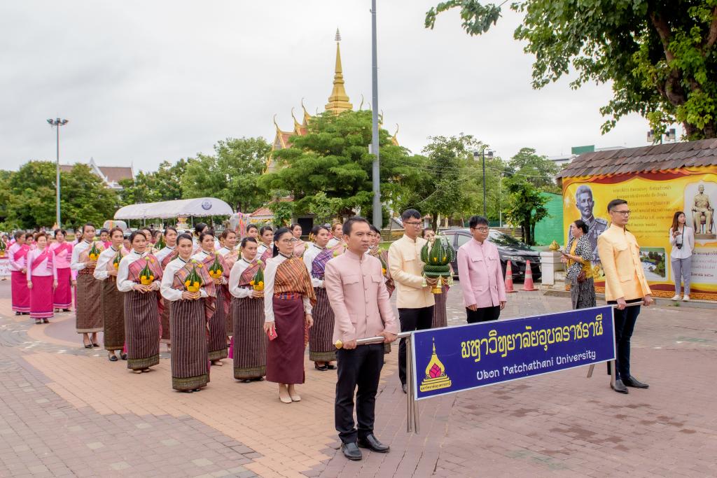 วันอังคารที่ 20 ตุลาคม 2563 มหาวิทยาลัยอุบลราชธานี โดย ดร.ปิยณัฐ สร้อยคำ ผู้ช่วยอธิการบดีฝ่ายสื่อสารองค์กรและพันธกิจสัมพันธ์ ผศ.ดร.เฉลิมชัย วงศ์รักษ์ ผู้ช่วยอธิการบดีฝ่ายวิเทศสัมพันธ์และการศึกษานานาชาติ มหาวิทยาลัยอุบลราชธานี พร้อมบุคลากร วันเชิดชูเกียรติและรำลึก หม่อมเจียงคำ ชุมพล ณ อยุธยา ประจำปี โดยได้ร่วมขบวนแห่ขันหมากเบ็งเชิดชูเกียรติและรำลึกพระคุณและเพื่อแสดงความกตัญญูกตเวทีบูชาในวันคล้ายวันถึงแก่อนิจกรรม ในวันที่ 20 ตุลาคม ของทุกปี โดยมี นายวิรุจ วิชัยบุญ รองผู้ว่าราชการจังหวัดอุบลราชธานี เป็นประธาน นำหัวหน้าส่วนราชการ หน่วยงาน พ่อค้า ประชาชน นักเรียน และนักศึกษา ร่วมประกอบพิธีบำเพ็ญกุศลพร้อมนำวางขันหมากเบ็ง และกล่าวคำเชิดชูเกียรติ หม่อมเจียงคำ ชุมพล ณ อยุธยา และมอบรางวัล “หม่อมเจียงคำ” ณ ลานหม่อมเจียงคำ วัดสุทัศนาราม ตำบลในเมือง อำเภอเมืองอุบลราชธานี จังหวัดอุบลราชธานี