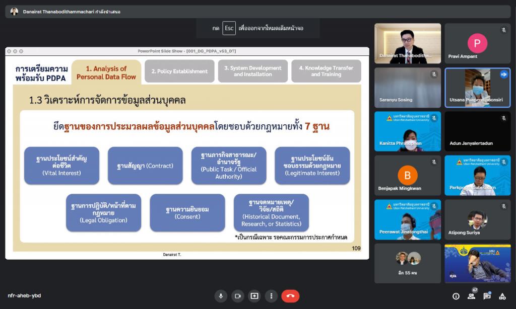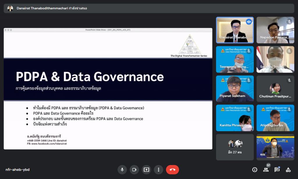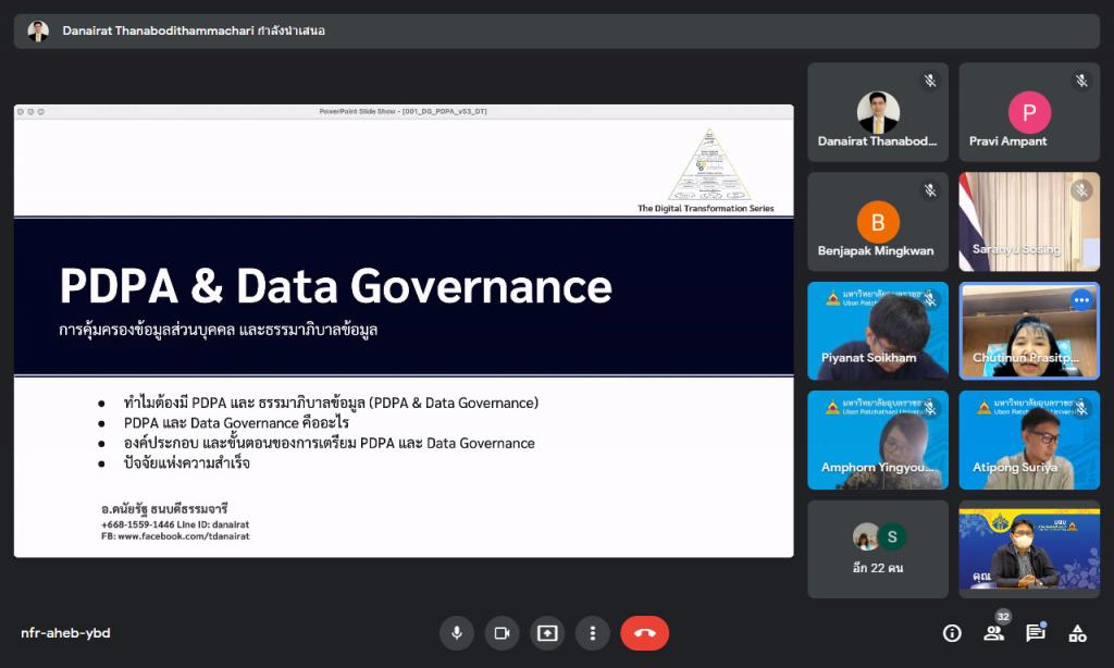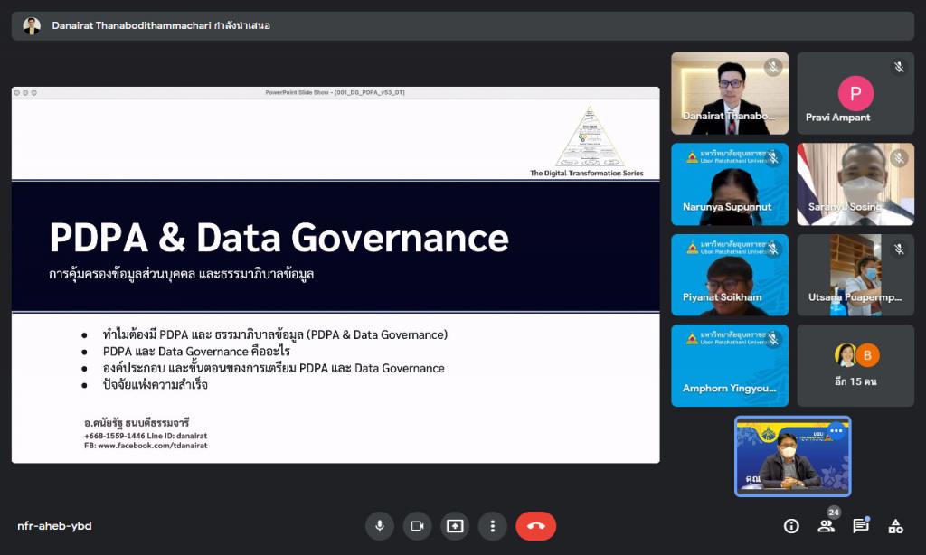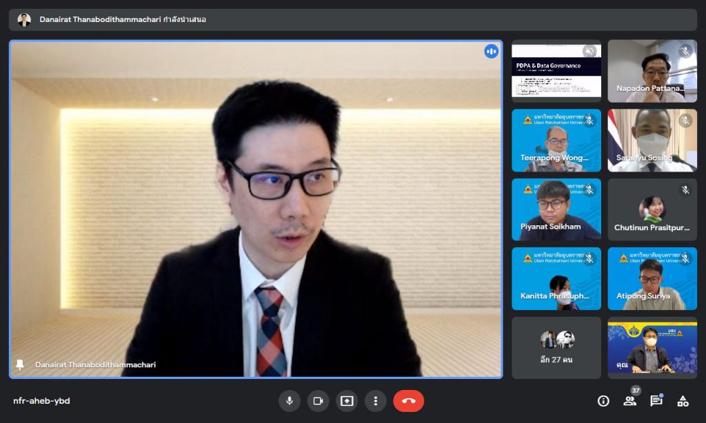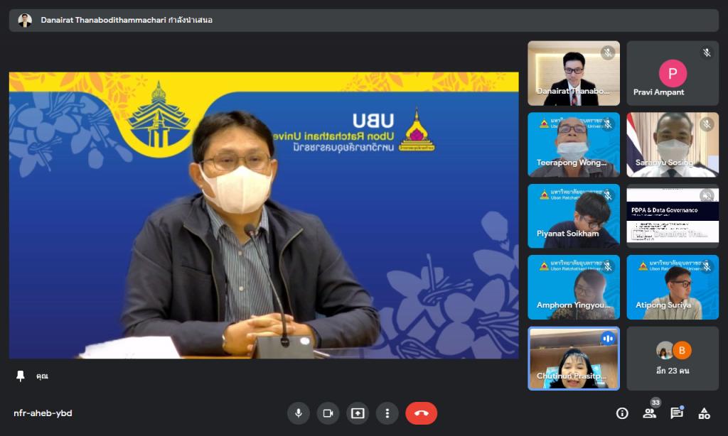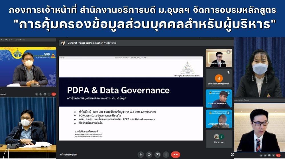 วันพุธที่ 19 มกราคม 2565 มหาวิทยาลัยอุบลราชธานี โดย กองการเจ้าหน้าที่ สำนักงานอธิการบดี จัดอบรมหลักสูตร "การคุ้มครองข้อมูลส่วนบุคคลสำหรับผู้บริหาร" ผ่านระบบการประชุมทางสื่ออิเล็กทรอนิกส์ ให้แก่คณะผู้บริหารมหาวิทยาลัย โดยมี ผู้ช่วยศาสตราจารย์ ดร.ชุตินันท์ ประสิทธิ์ภูริปรีชา เป็นประธานเปิดกล่าต้อนรับผู้เข้าอบรม พร้อมเข้าร่วมการอบรม และได้รับเกียรติจาก อาจารย์ดนัยรัฐ ธนบดีธรรมจารี เป็นวิทยากร สำหรับการอบรมครั้งนี้มีวัตถุประสงค์ เพื่อเสริมสร้างความรู้ ความเข้าใจเกี่ยวกับพระราชบัญญัติคุ้มครองข้อมูลส่วนบุคคล พ.ศ. 2562 และเตรียมพร้อมให้ผู้บริหารในการปฏิบัติตามกฎหมาย ซึ่งจะมีผลใช้บังคับเต็มรูปแบบ ในวันที่ 1 มิถุนายน 2565 โดยสาระสำคัญของการอบรมในครั้งนี้ มุ่งเน้นให้ผู้บริหารทราบถึงหลักการและขั้นตอนที่ถูกต้อง ตัวอย่าง และเครื่องมือ รวมถึงแบบฟอร์มที่ใช้ในการจัดการข้อมูลส่วนบุคคล ตลอดจนทราบหลักการประเมินความพร้อมขององค์กรต่อการจัดการข้อมูลในองค์กรอย่างมีหลักธรรมาภิบาลที่ดีร่วมกัน โดยมีผู้บริหารประกอบด้วย รองอธิการบดี ผู้ช่วยอธิการบดี คณบดี ผู้อำนวยการสำนัก ผู้อำนวยการกอง หัวหน้าสำนักงานเลขานุการ หัวหน้าสำนักงานในสังกัดสำนักงานอธิการบดี และผู้บริหารส่วนงานที่เกี่ยวข้องกว่า 60 คน และได้รับเกียรติจาก อาจารย์ดนัยรัฐ ธนบดีธรรมาจารี ซึ่งเป็นผู้ทรงคุณวุฒิด้านการบริหารจัดการข้อมูลของหน่วยงานภาครัฐและเอกชน ทำหน้าที่เป็นวิทยากรสำหรับการฝึกอบรมในครั้งนี้