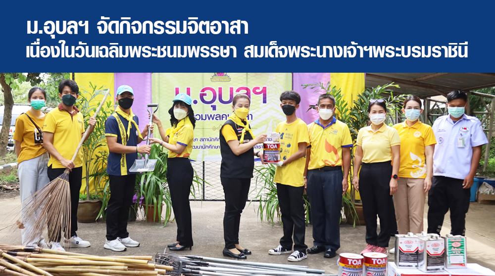 มหาวิทยาลัยอุบลราชธานี โดย องค์การนักศึกษา และสำนักงานพัฒนานักศึกษา จัดกิจกรรมจิตอาสาบำเพ็ญประโยชน์เฉลิมพระเกียรติ โครงการ ม.อุบลฯ รวมพลคนอาสา ภายใต้ กิจกรรมจิตอาสา เนื่องในวันเฉลิมพระชนมพรรษา สมเด็จพระนางเจ้าฯ พระบรมราชินี เพื่อน้อมรำลึกในพระมหากรุณาธิคุณ โดยมี ผู้ช่วยศาสตราจารย์ ดร.ชุตินันท์ ประสิทธิ์ภูริปรีชา อธิการบดี เป็นประธาน และ นายชัชนันท์ กำจร ประธานฝ่ายบำเพ็ญประโยชน์ องค์การนักศึกษา มหาวิทยาลัยอุบลราชธานี กล่าวรายงาน ซึ่งมี ดร.จรวยพร แสนทวีสุข รองอธิการบดีฝ่ายพัฒนานักศึกษาและศิษย์เก่าสัมพันธ์ นำบุคลากรและผู้นำนักศึกษา นักศึกษาจิตอาสา จำนวน 100 คน ร่วมกิจกรรมทำความสะอาด ตัดหญ้า เก็บขยะ ตาสีฟุตบาททางเท้า และโรงจอดรถ เป็นต้น วันที่ 3 มิถุนายน 2565 ณ อาคารเรียนรวม 3 มหาวิทยาลัยอุบลราชธานี