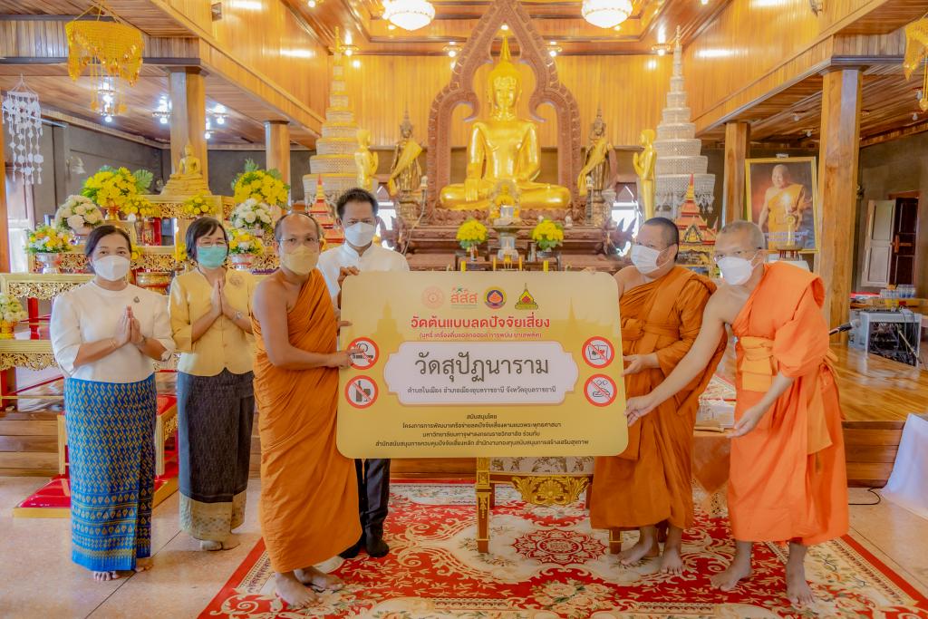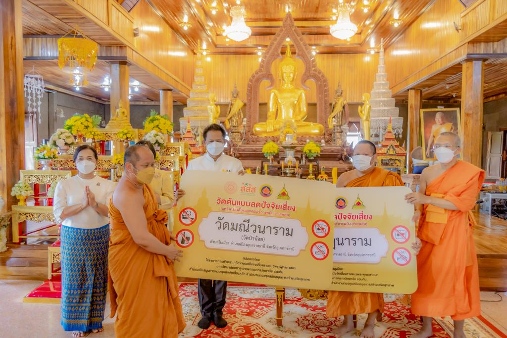 ทั้งนี้ วัดต้นแบบลดปัจจัยเสี่ยง จังหวัดอุบลราชธานี จำนวน 20 วัด ประกอบไปด้วย วัดมหาวนาราม วัดมณีวนาราม วัดสุปัฏนาราม วัดทุ่งศรีเมือง วัดปทุมมาลัย วัดหลวง วัดศรีประดู่ วัดพลแพน วัดกลาง วัดบูรพา วัดกุดคูณ วัดสระประสานสุข วัดบ้านก้านเหลือง วัดด้ามพร้า วัดปากน้ำ บุ่งสระพัง วัดมงคลโกวิทาราม วัดวารินทราราม วัดผาสุการาม วัดแสนสำราญ และวัดใหม่ทองสว่าง