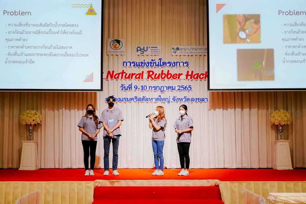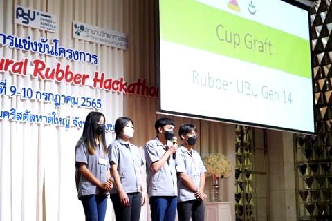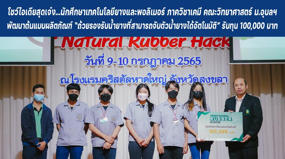 สำหรับนักศึกษาสาขาเทคโนโลยียางและพอลิเมอร์ ภาควิชาเคมี คณะวิทยาศาสตร์ มหาวิทยาลัยอุบลราชธานี ได้สร้างชื่อเสียงและความภาคภูมิใจให้กับทางณะวิทยาศาสตร์และมหาวิทยาลัยมาอย่างต่อเนื่อง และในครั้งนี้ได้เข้าร่วมกิจกรรมในโครงการ “Smart Natural Rubber Hackathon”จัดโดย การยางแห่งประเทศไทยร่วมกับอุทยานวิทยาวิทยาศาสตร์ มหาวิทยาลัยสงขลานครินทร์ จัดเมื่อวันที่ 9 - 10กรกฎาคม 2565 ณ ห้องคริสตัล โรงแรมคริสตัล อ.หาดใหญ่ จ.สงขลา เพื่อเฟ้นหา เทคโนโลยี นวัตกรรม ที่ช่วยเพิ่มมูลค่าให้กับยางพาราด้วยการสนับสนุนทุนพัฒนา Prototype รวมมูลค่า 500,000 บาทโดยมีผู้เข้าร่วมแข่งขันเสนอแนวคิดจากสถาบันการศึกษาในระดับอุดมศึกษาจากทั่วประเทศ จำนวน 16 ทีม และมหาวิทยาลัยอุบลราชธานีได้ส่งไอเดียเข้าร่วมกิจกรรมดังกล่าวด้วยกัน จำนวน 2 โครงการ/ทีม ภายใต้การดูแลของ ผู้ช่วยศาสตราจารย์ชัยวุฒิ วัดจัง อาจารย์ประจำสาขาเทคโนโลยียางและพอลิเมอร์ ภาควิชาเคมี คณะวิทยาศาสตร์ มหาวิทยาลัยอุบลราชธานี เป็นอาจารย์ที่ปรึกษา ประกอบด้วย ทีม 2NHM RPT 14 พัฒนาไอเดีย “เครื่องหยดและกวนน้ำกรดอัตโนมัติ” แนวคิดของ นายชลชาติ จิตต์ภักดี นางสาวสุพิฌาย์ นารี นางสาวเมธาวดี แสนทวีสุข และนางสาวชลธิชา ธรรมวงศ์ นักศึกษาชั้นปีที่ 3 สาขาเทคโนโลยียางและพอลิเมอร์ ภาควิชาเคมี คณะวิทยาศาสตร์ มหาวิทยาลัยอุบลราชธานี เป็นนวัตกรรมเพื่อลดแรงงานและเวลาในการหยดน้ำกรดพร้อมกวนน้ำกรดในการผลิตยางก้อนถ้วยและทีม Rubber UBU gen 14 พัฒนาไอเดีย “ถ้วยรองรับน้ำยางที่สามารถจับตัวน้ำยางได้อัตโนมัติ” แนวคิดของ นายณรงค์เดช ดาผา นายธนากร รูปสี นายอมรศักดิ์ สืบสิน นางสาวชไมพร สุริยา และ นางสาวสกุลทิพย์ อยู่สอน นักศึกษาชั้นปีที่ 3 สาขาเทคโนโลยียางและพอลิเมอร์ ภาควิชาเคมี คณะวิทยาศาสตร์ มหาวิทยาลัยอุบลราชธานี เป็นนวัตกรรมที่สามารถจับตัวน้ำยางสดได้เองโดยไม่จำเป็นต้องเติมน้ำกรด และเป็นผลงานที่ได้รับการพิจารณาคัดเลือกจากคณะกรรมการผู้ทรงคุณวุฒิ ว่าเป็นผลงานแนวคิดสร้างสรรค์นวัตกรรมที่โดดเด่นสามารถนำไปพัฒนาต่อยอดได้จริง และเป็นแนวคิดที่ได้รับทุนสนับสนุนในการพัฒนาต้นแบบ (Prototype) จำนวน 100,000.- บาท ติด 1 ใน 5 ทีม ที่จะต้องพัฒนาและต่อยอดแนวคิดเพื่อนำเสนอผลงานต่อคณะกรรมการผู้ทรงคุณวุฒิอีกครั้ง ทั้ง 5 ทีม ในช่วงเดือนพฤศจิกายน 2565 ในงาน Demo Dayต่อไป