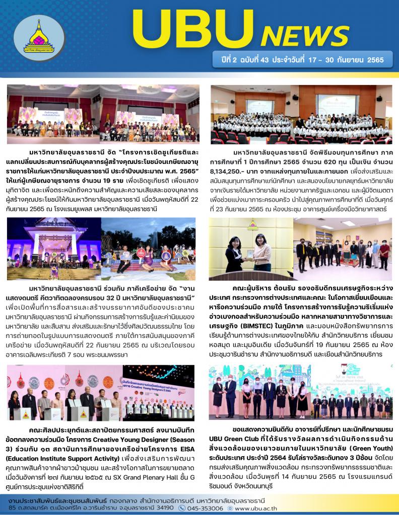 UBU NEWS ปีที่ 2 ฉบับที่ 43 ประจำวันที่ 17 - 30 กันยายน 2565