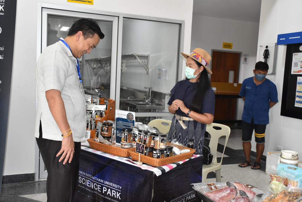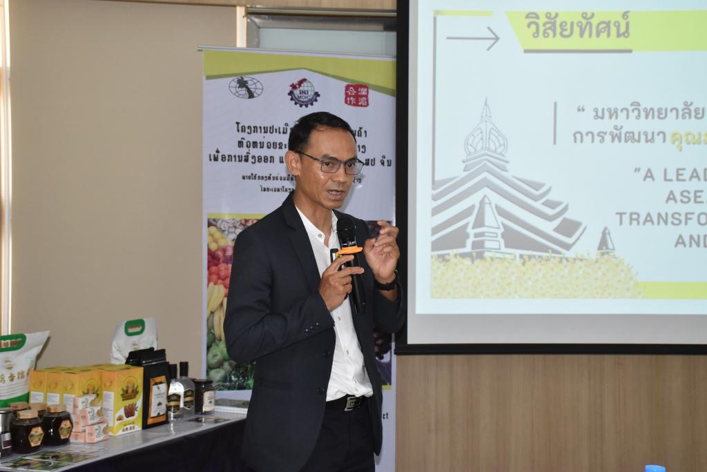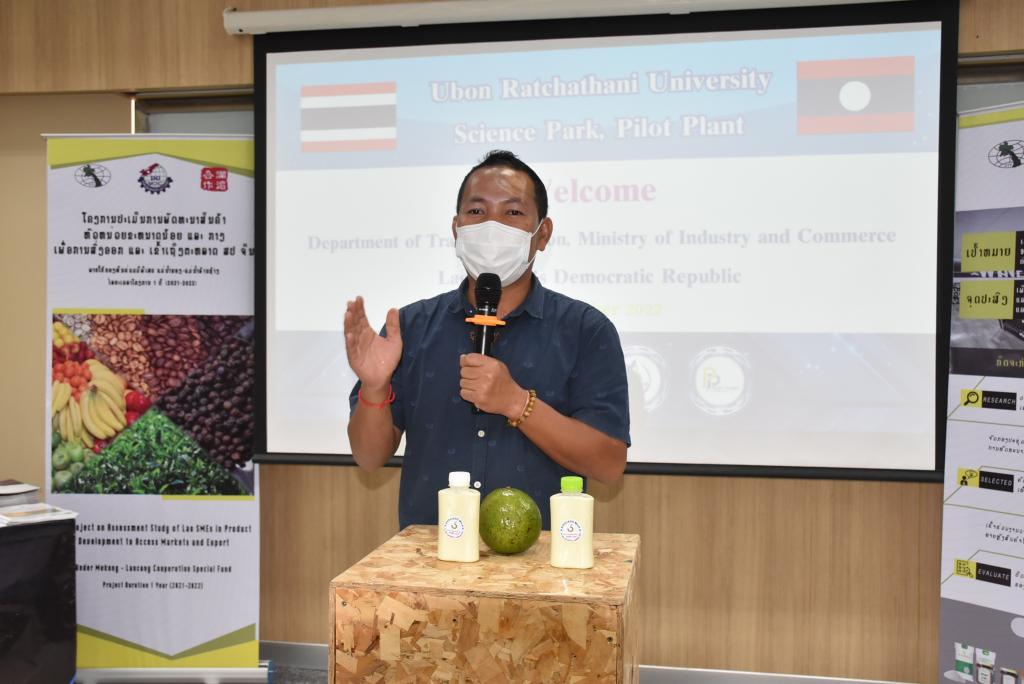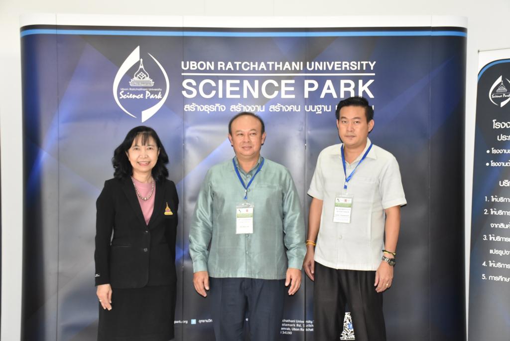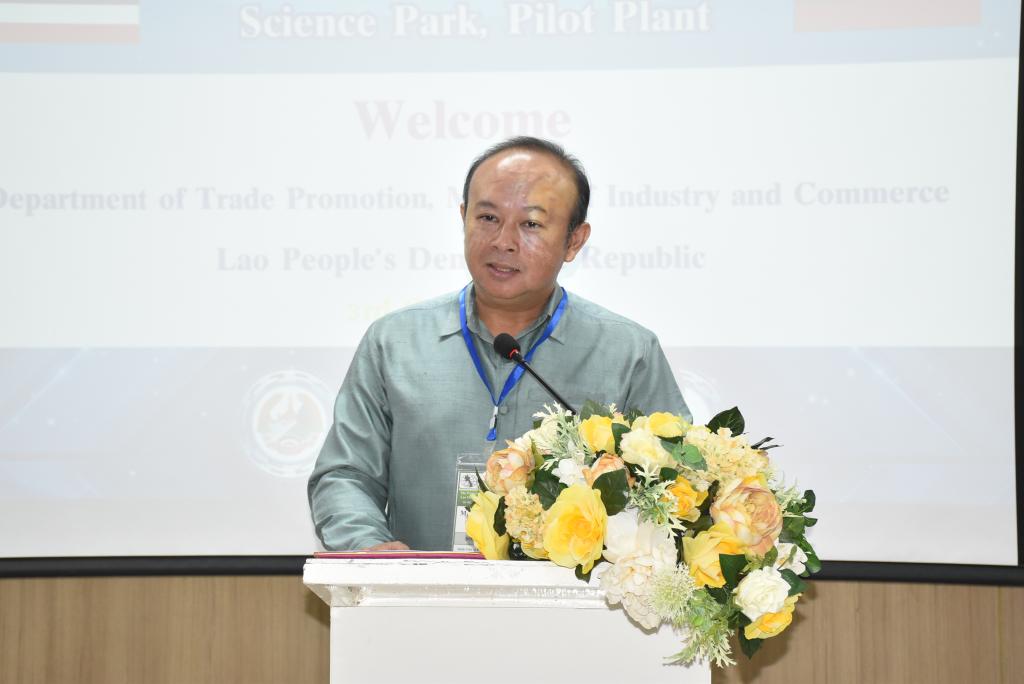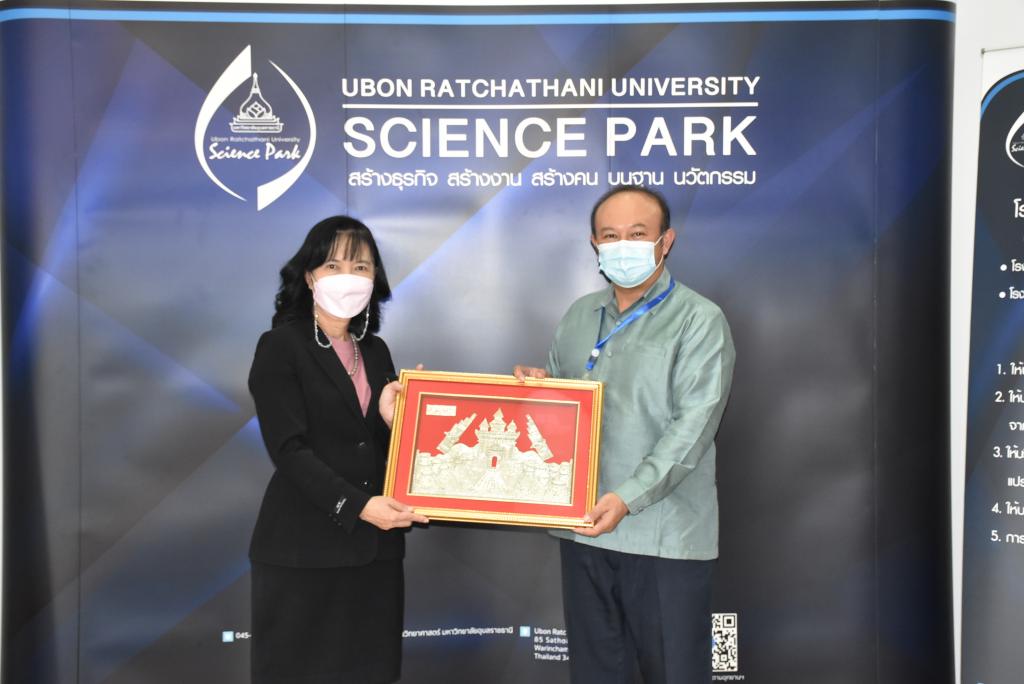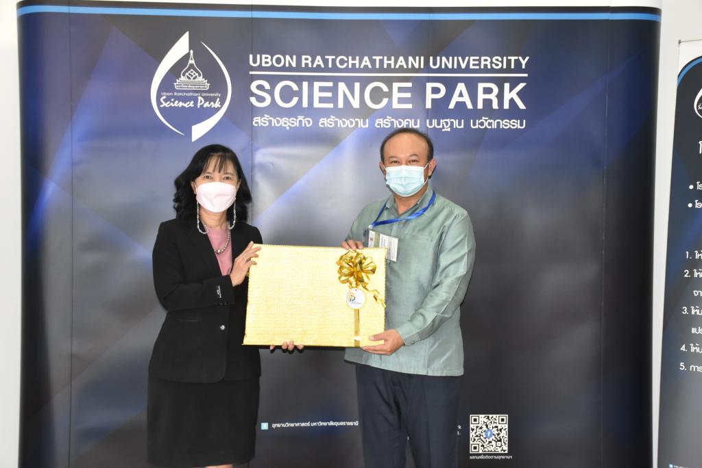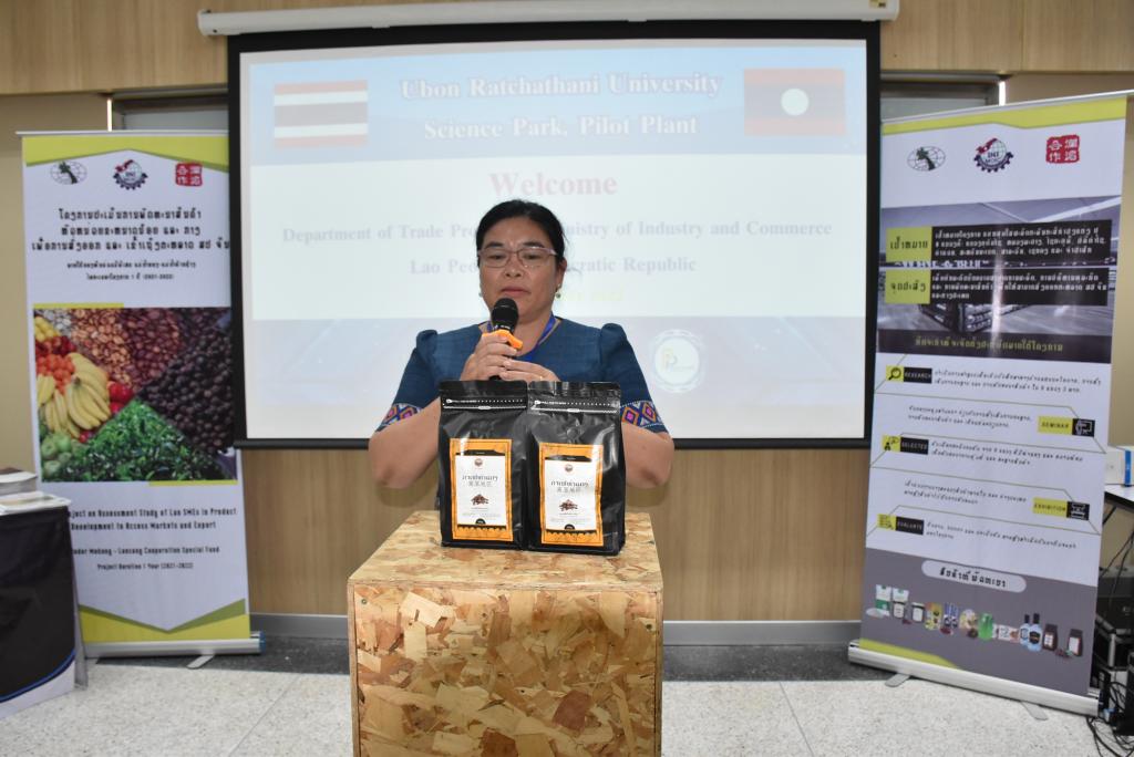 ผู้ช่วยศาสตราจารย์ ดร.ชุตินันท์ ประสิทธิ์ภูริปรีชา อธิการบดีมหาวิทยาลัยอุบลราชธานี กล่าวว่า มหาวิทยาลัยอุบลราชธานีมีความยินดีและเป็นเกียรติอย่างยิ่ง ที่มีโอกาสต้อนรับคณะผู้บริหารและผู้ประกอบการจากสาธารณรัฐประชาธิปไตยประชาชนลาว ที่เดินทางมาร่วมกิจกรรมศึกษาดูงานและการจัดคู่ธุรกิจวันนี้ สืบเนื่องจากมหาวิทยาลัยอุบลราชธานี เป็นมหาวิทยาลัยที่มุ่งเน้นการเรียนการสอน และการวิจัย ด้วยวิทยาศาสตร์ เทคโนโลยี และนวัตกรรม เพื่อยกระดับการพัฒนาเศรษฐกิจและสังคมในพื้นที่ รวมถึงการผลักดันการนำองค์ความรู้ที่เกิดขึ้นภายในมหาวิทยาลัยออกสู่สังคมและชุมชน ทั้งระดับจังหวัด และระดับประเทศ โดยมีอุทยานวิทยาศาสตร์และโรงงานต้นแบบ เป็นหน่วยงานที่มีความสำคัญในการขับเคลื่อนโดยมุ่งเน้นการเชื่อมโยงการถ่ายทอดองค์ความรู้ของนักวิจัย คณาจารย์ และบุคลากรของมหาวิทยาลัย เพื่อยกระดับผู้ประกอบการให้เป็นผู้ประกอบการนวัตกรรม ซึ่งในส่วนของโรงงานต้นแบบนั้น ประกอบด้วยโรงงาน 2 โรงงาน ได้แก่ โรงงานต้นแบบด้านการผลิตอาหารประเภทเนื้อสัตว์ และโรงงานต้นแบบด้านการผลิตอาหารประเภทผักและผลไม้ โดยสร้างขึ้นมาเพื่อเป็นสถานที่ให้บริการสำหรับเกษตรกรและผู้ประกอบการในพื้นที่อีสานและกลุ่มประเทศเพื่อนบ้าน เพื่อใช้ในการผลิต วิจัย และพัฒนาผลิตภัณฑ์ตลอดจนบรรจุภัณฑ์ โดยมีวัตถุประสงค์หลักในการเพิ่มมูลค่าผลผลิตทางการเกษตรและยกระดับความสามารถในการผลิตสินค้าของเกษตรกรและผู้ประกอบการในพื้นที่ ทั้งในแง่ของคุณภาพ มาตรฐาน ปริมาณการผลิต และการสร้างมูลค่าเพิ่มของผลิตภัณฑ์ เพื่อช่วยลดต้นทุนด้านการจัดหาเครื่องจักร การจัดการเครื่องจักร การซ่อมบำรุง การสร้างและรักษามาตรฐานการผลิต อันจะเป็นการสร้างงานให้แก่เกษตรกรและผู้ประกอบการ เป็นไปตามวิสัยทัศน์ของมหาวิทยาลัยต่อไป