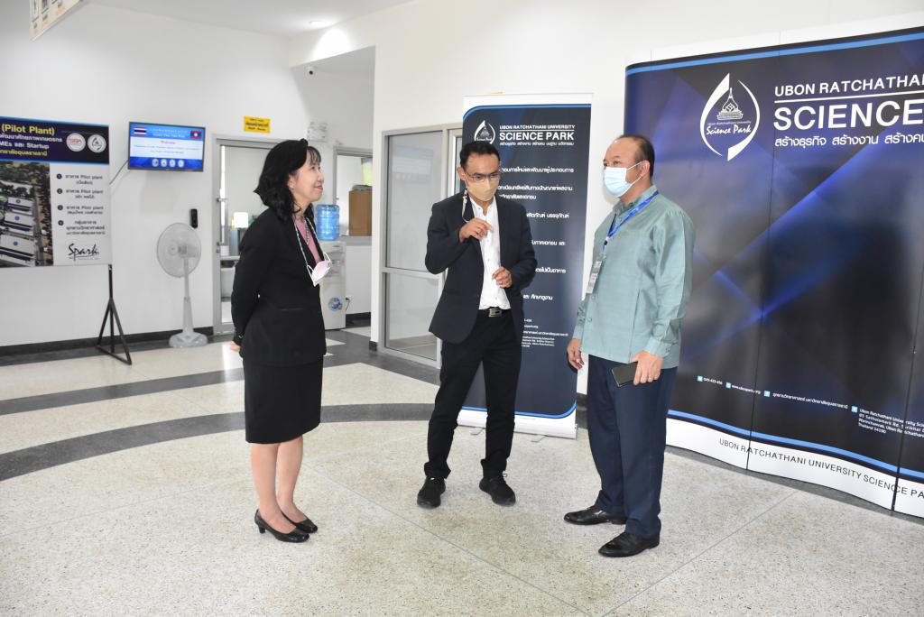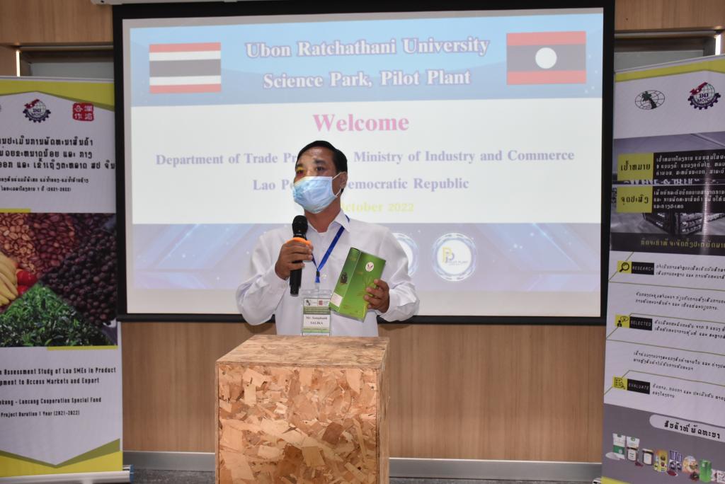 เมื่อวันจันทร์ที่ 3 ตุลาคม 2565 มหาวิทยาลัยอุบลราชธานี ต้อนรับ คณะศึกษาดูงานผู้บริหารและผู้ประกอบการจากสาธารณรัฐประชาธิปไตยประชาชนลาว และไทย นำทีมโดย ผู้ช่วยศาสตราจารย์ ดร.ชุตินันท์ ประสิทธิ์ภูริปรีชา อธิการบดีมหาวิทยาลัยอุบลราชธานี รองศาสตราจารย์ ดร.ชวลิต ถิ่นวงศ์พิทักษ์ รองอธิการบดีฝ่ายวิจัย นวัตกรรมและบริการวิชาการ พร้อมคณะผู้บริหาร และบุคลากรอุทยานวิทยาศาสตร์และโรงงานต้นแบบ ร่วมต้อนรับ ท่าน Xaysomphet Norasingh (ท่านไซสมเพช นอระสิง) Director General, Department of Trade Promotionผู้บริหารและผู้ประกอบการจากสาธารณรัฐประชาธิปไตยประชาชนลาว ที่เดินทางมาร่วมกิจกรรมศึกษาดูงานและการจัดคู่ธุรกิจ ณ โรงงานต้นแบบด้านการผลิตอาหาร มหาวิทยาลัยอุบลราชธานี