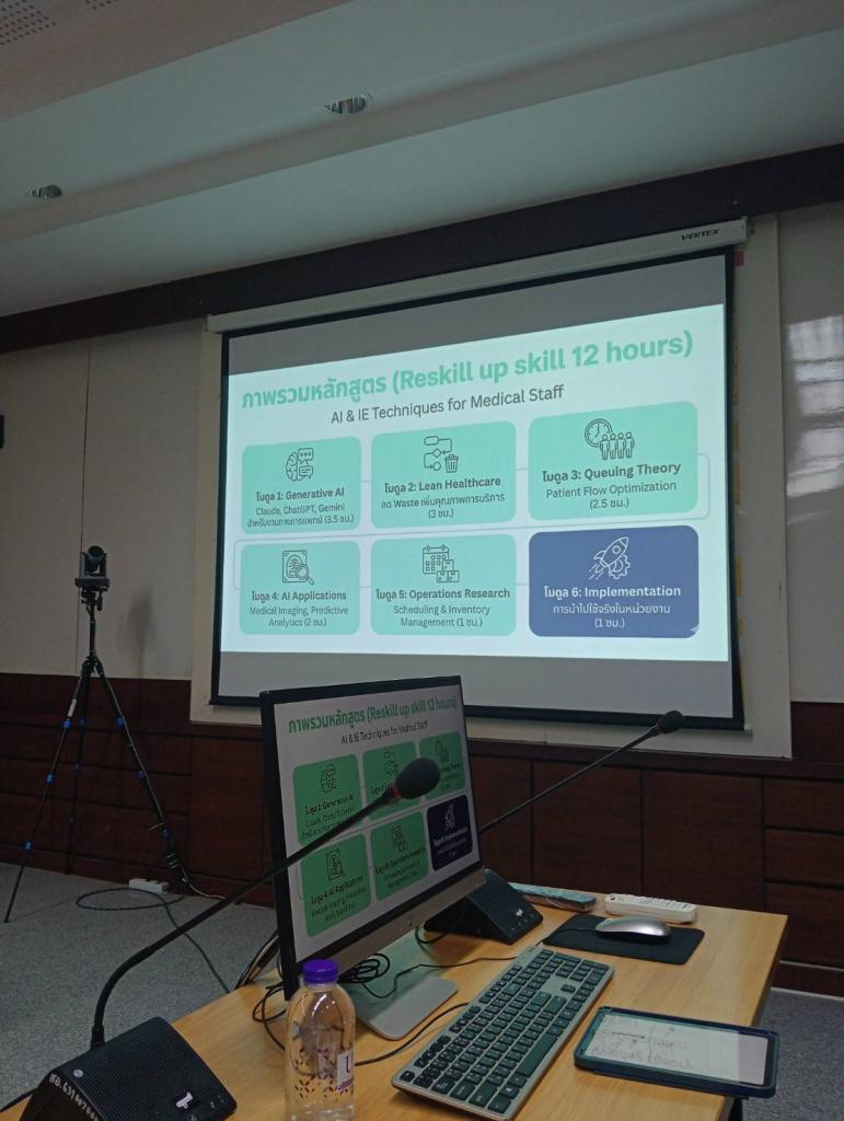 ศูนย์นวัตกรรมบริการวิชาการ (InCAS) มหาวิทยาลัยอุบลราชธานี ร่วมกับ คณะหลักสูตรวิทยาศาสตร์ด้านสุขภาพ และคณะวิศวกรรมศาสตร์ เพื่อพัฒนาหลักสูตร “AI & IE Techniques for Medical Staff” ผสานเทคโนโลยีปัญญาประดิษฐ์ (AI) และเทคนิควิศวกรรมอุตสาหการ (IE) เข้าด้วยกัน เพื่อเสริมแกร่งบุคลากรทางการแพทย์ โดย ผศ.ดร.ปิยณัฐ สร้อยคำ ผู้ช่วยอธิการบดีฝ่ายการตลาด เป็นประธาน ซึ่งมีอาจารย์บุคลากร เข้าร่วม 20คน ณ ห้องประชุมบุณฑริก อาคารสำนักงานอธิการบดี 2เมื่อวันจันทร์ที่ 15ธันวาคม 2568ที่ผ่านมา