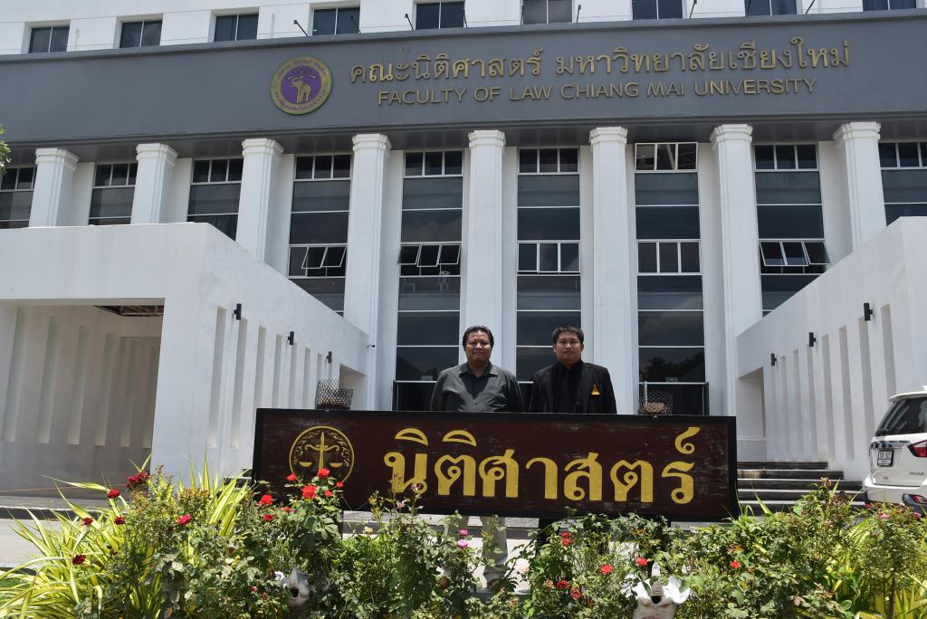 รองศาสตราจารย์สมชาย ปรีชาศิลปกุลหัวหน้าศูนย์วิจัยและพัฒนากฎหมาย อาจารย์สุธาสินี สุภาหัวหน้าศูนย์บริการวิชาการทางกฎหมาย นายวิสูตร ลิ่วเกียรติเลขานุการสำนักงานและบุคลากรของคณะนิติศาสตร์ มหาวิทยาลัยเชียงใหม่ ให้การต้อนรับคณะศึกษาดูงาน จากคณะนิติศาสตร์ มหาวิทยาลัยอุบลราชธานี