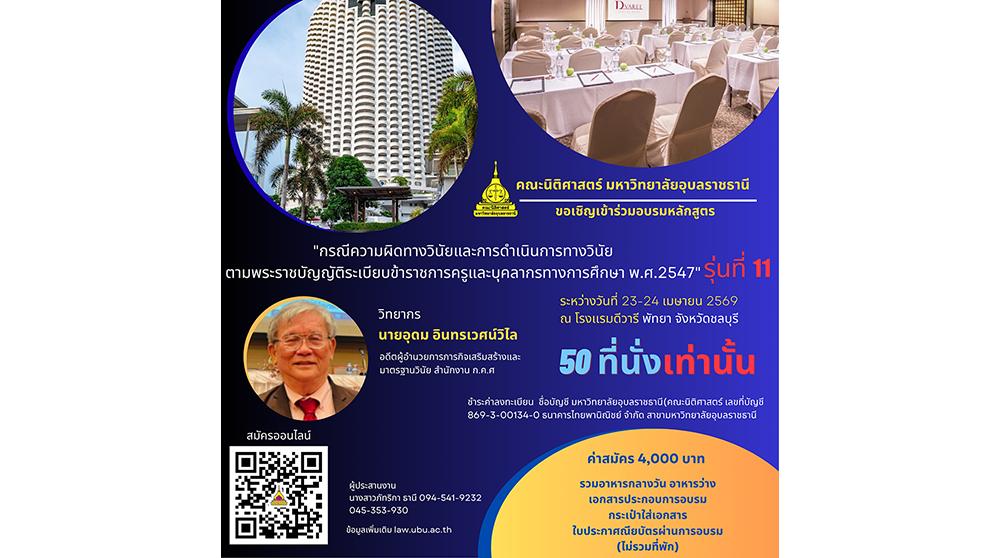 เปิดรับสมัคร อบรมหลักสูตร “กรณีความผิดทางวินัยและการดำเนินการทางวินัยตามพระราชบัญญัติ ระเบียบข้าราชการครูและบุคลากรทางการศึกษา พ.ศ. 2547” 31 มีนาคม 2569
