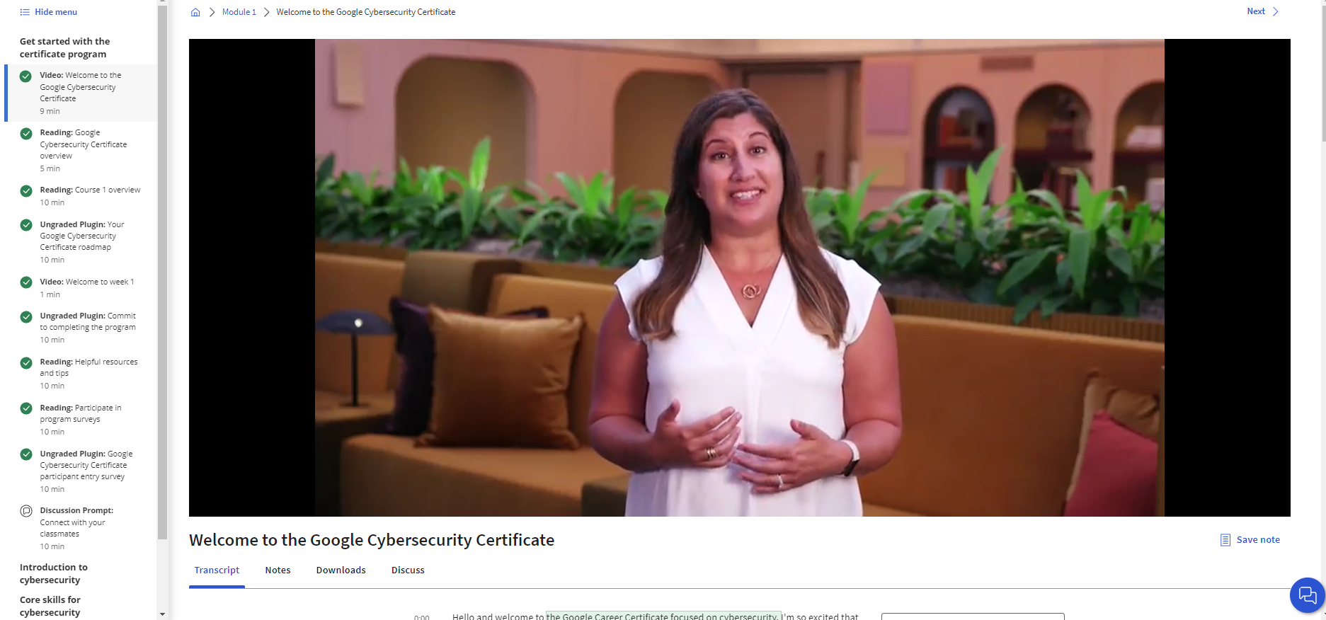 ![]() คอร์ส Google Cybersecurity ใน Coursera เป็นชุดคอร์สที่พัฒนาโดย Google เพื่อสอนเรื่องความมั่นคงปลอดภัยของข้อมูลและเทคโนโลยีทางไซเบอร์ ชุดคอร์สนี้มีหลายบทเรียนที่ครอบคลุมหลายด้านของความมั่นคงปลอดภัยทางไซเบอร์ด้วยกัน โดยบทเรียนหลักๆ ประกอบด้วย: