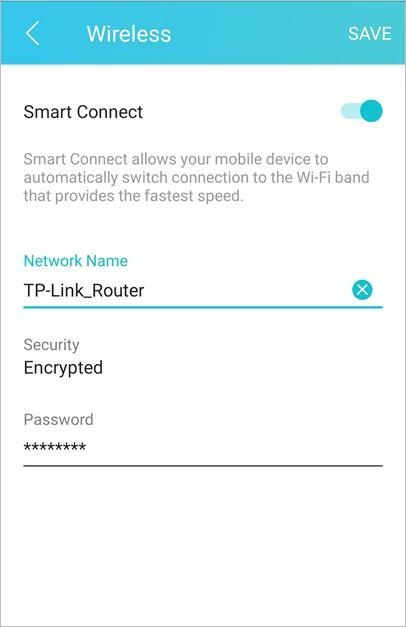 จัดการผ่านแอพลิเคชั่น Tether App: 1. เชื่อมต่อเราเตอร์ TP-Link Wi-Fi ของคุณ 2. เปิดแอพลิเคชั่น Tether จากนั้นเลือกเราเตอร์ของคุณจากหน้ารายการ 3. ไปที่หน้าตั้งค่า Wireless settings และกดเปิด Smart Connect. 4. ตั้งค่าชื่อเครือข่ายและรหัสผ่าน จากนั้นกดบันทึกการตั้งค่าของคุณ เมื่อไหร่ที่ควรเปิดใช้ Smart Connect? 1) เมื่อตอนที่คุณไม่แน่ใจว่าสัญญาณคลื่นไหนหรือตำแหน่งใดให้สัญญาณไร้สายที่ดีที่สุด เป็นเรื่องปกติที่สัญญาณไร้สายไม่สามารถเสถียรตลอดเวลา ดังนั้นบางครั้งจำเป็นจะต้องเปลี่ยนคลื่นสัญญาณเพื่อให้ได้รับประสิทธิภาพที่ดีที่สุด ถ้าหากคุณไม่แน่ใจว่าสัญญาณคลื่นไหนหรือตำแหน่งใดให้เหมาะสมที่สุด เพียงแค่เปิดฟีเจอร์ Smart Connect บนเราเตอร์ของคุณ 2) เมื่อคุณใช้อุปกรณ์หลากหลายอุปกรณ์ในเวลาใกล้กัน ในปัจจุบันที่การจำหน่ายอุปกรณ์รุ่นใหม่รองรับ 5GHz เพิ่มขึ้น แต่สำหรับอุปกรณ์บางส่วนสามารถใช้งานได้ดีบนย่านความถี่ 2.4GHz หากคุณมีอุปกรณ์ที่เป็นรุ่นเก่าผสมกับรุ่นใหม่แล้วเลือกใช้งานแต่บน 2.4GHz เครือข่ายสัญญาณย่าน 2.4GHz จะทำงานหนักเนื่องจากการอุปกรณ์ทับซ้อนกัน หากเลือกเปิด Smart connect จะทำให้คุณได้เชื่อมต่อกับสัญญาณประสิทธิภาพสูงสุดโดยอัตโนมัติ เพื่อให้ทุกอุปกรณ์สามารถทำงานได้เต็มประสิทธิภาพ |