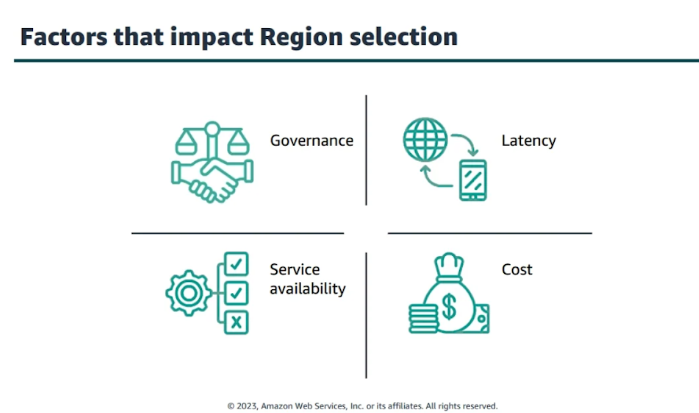 7. การเชื่อมต่อกับบริการอื่น ๆ (Inter-Region Connectivity) - ในกรณีที่ระบบของคุณต้องมีการเชื่อมต่อระหว่างหลาย Region ควรพิจารณาความเร็วและค่าใช้จ่ายในการเชื่อมต่อข้อมูลระหว่าง Region ที่คุณเลือก